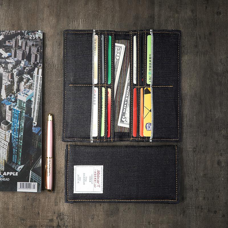 Design: Cool Denim Mens Leather Long Wallets Bifold Card Wallets For Men