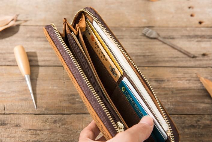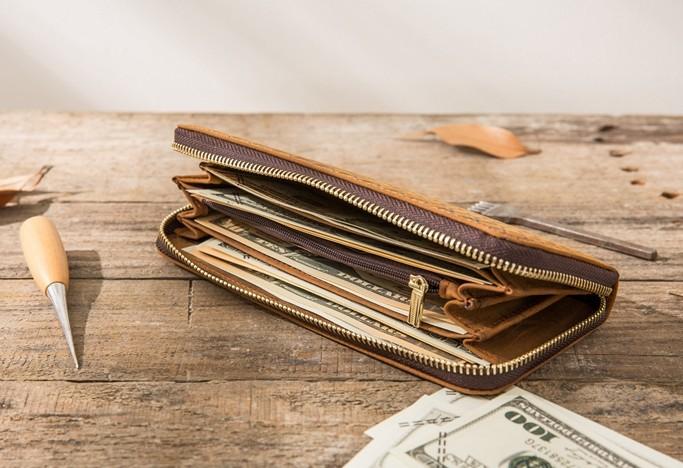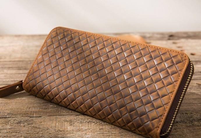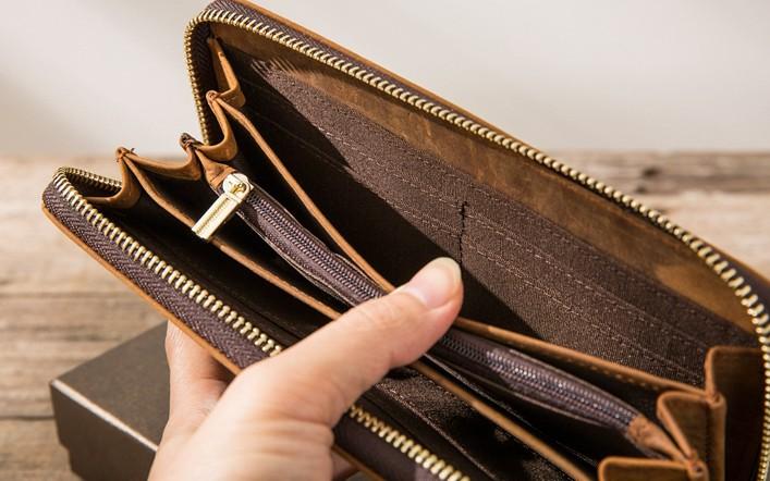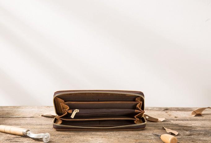 Design: Cool Leather Mens Coffee Long Zipper Clutch Wallet Long Wallet for Men