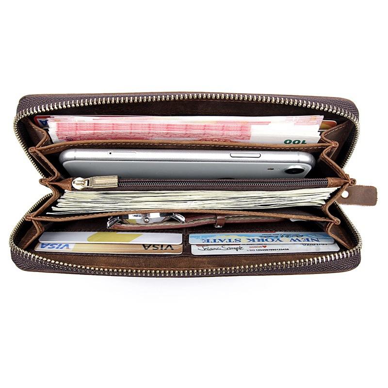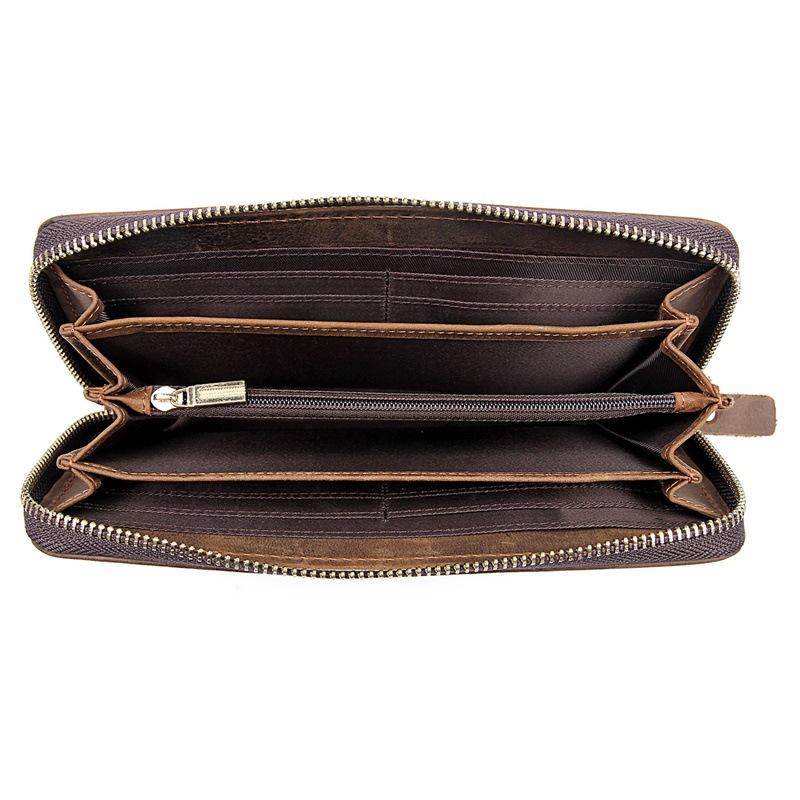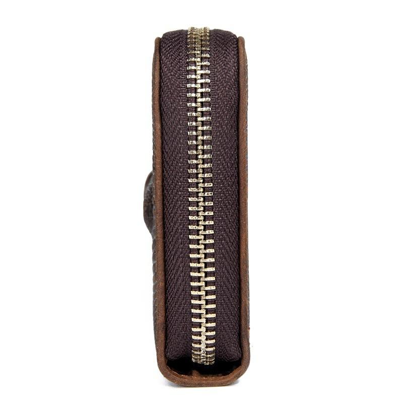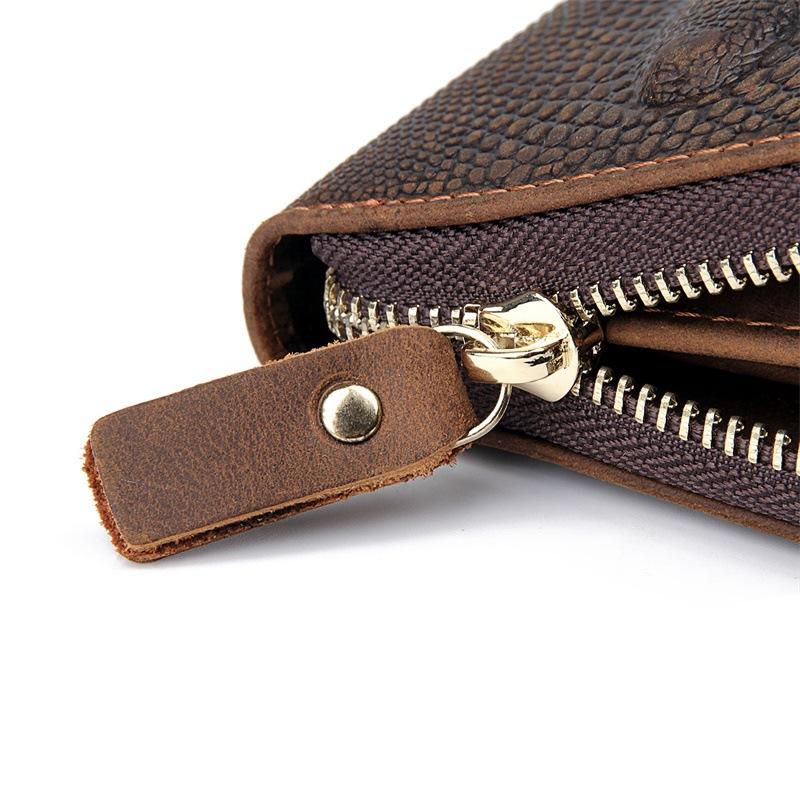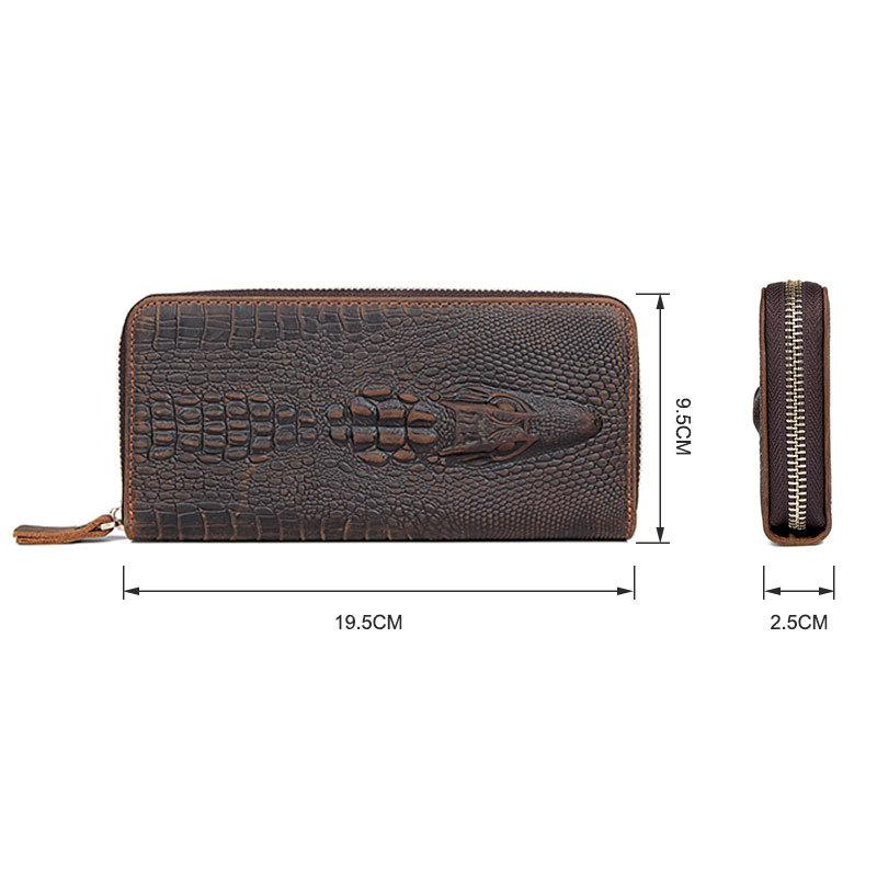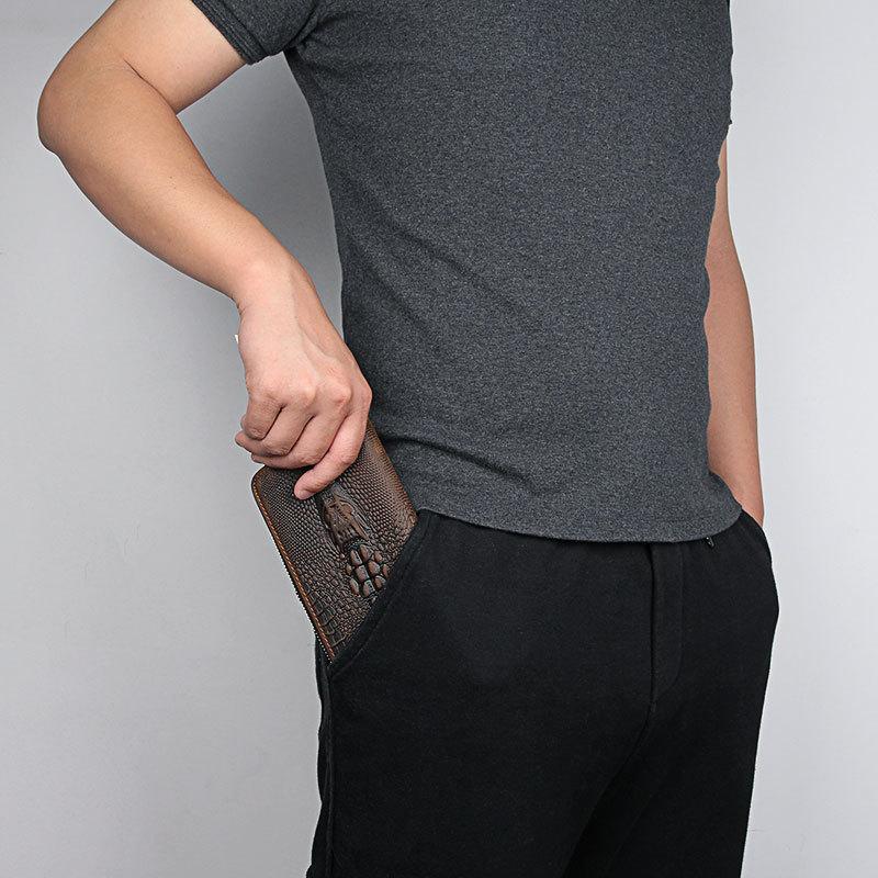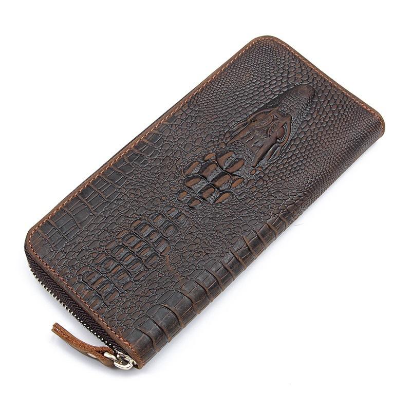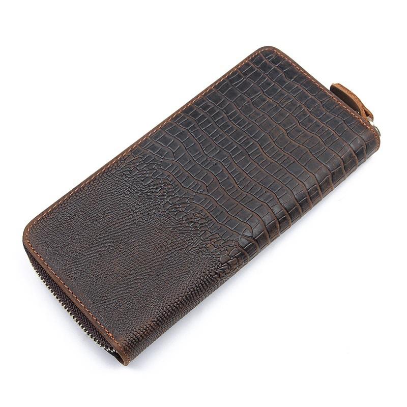 Design: Crocodile Skin Dark Brown Mens Leather Long Wallet Bifold Long Wallet for Men