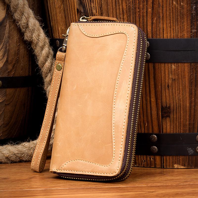Style: Dark Brown Cool Mens long Wallet Wristlet Bag Clutch Bag Yellow Brown Long Wallets for Men