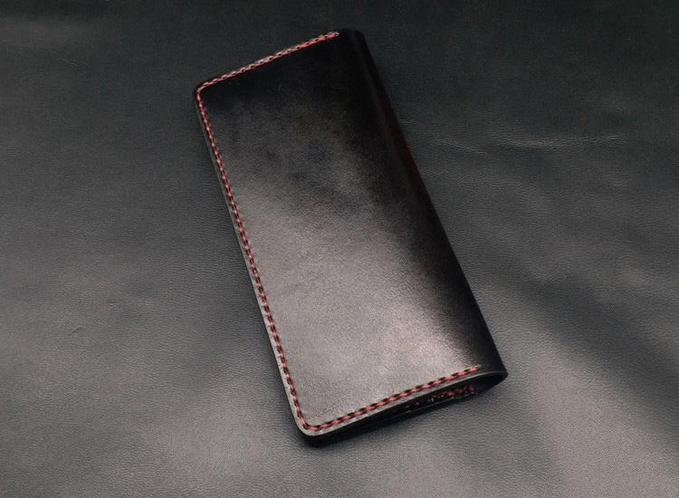 Style: Dark Coffee Handmade Tooled Smiling Skull Leather Mens Bifold Long Wallet Clutch For Men