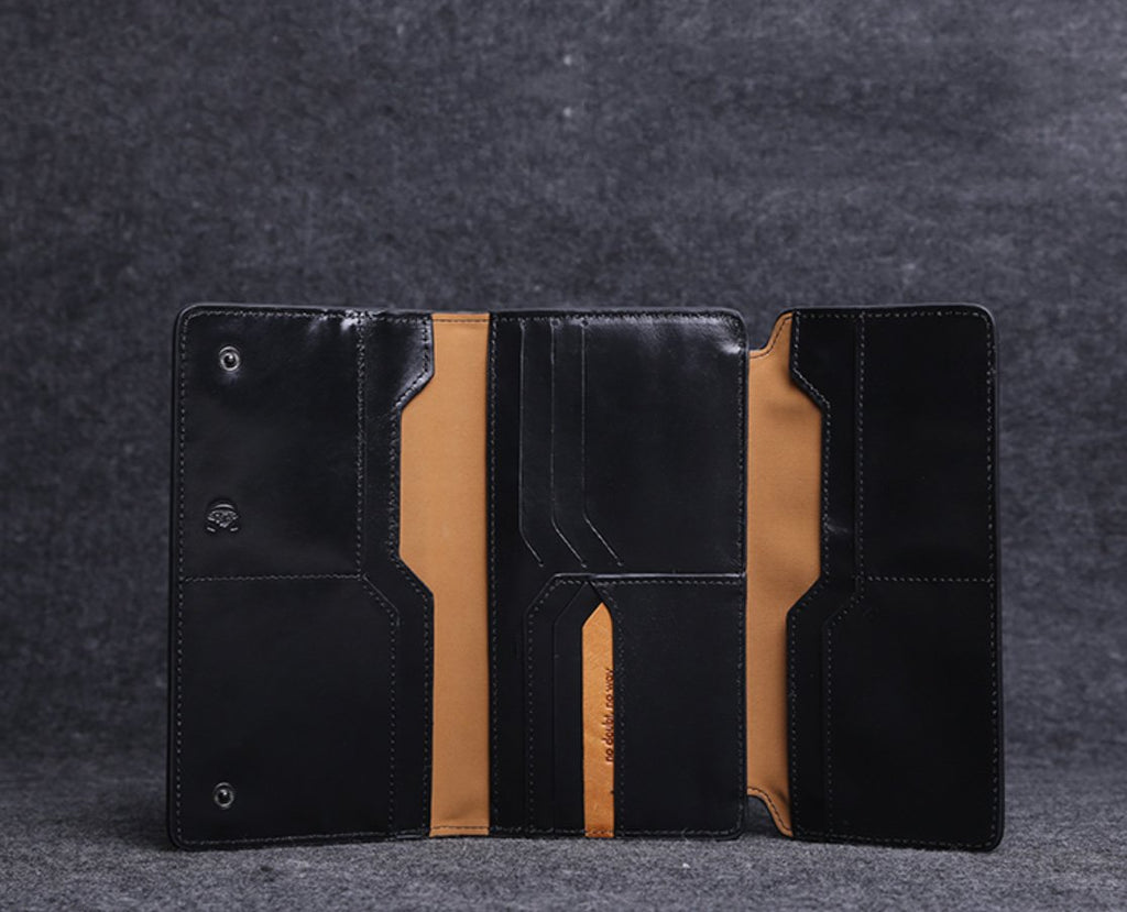 Design: Fashion Leather Men's Trifold Long Wallet Black Gray Long Wallet For Men
