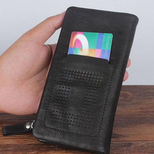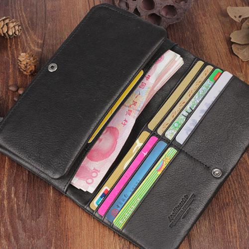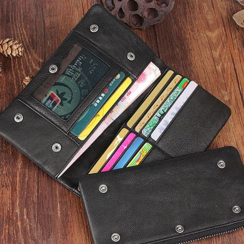 Design: Genuine Leather Mens Cool Long Leather Wallet Bifold Clutch Wallet for Men
