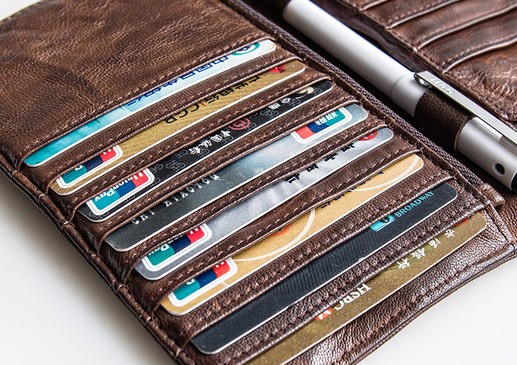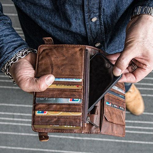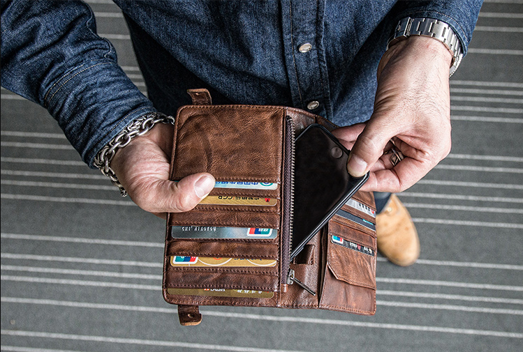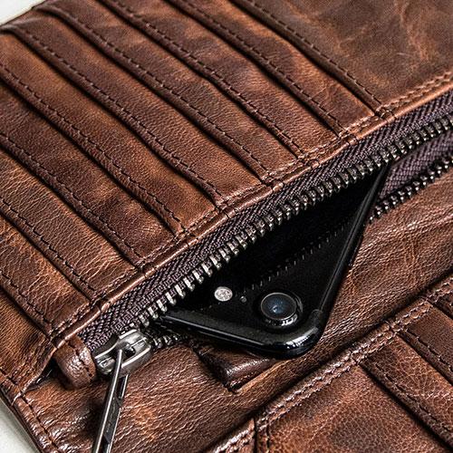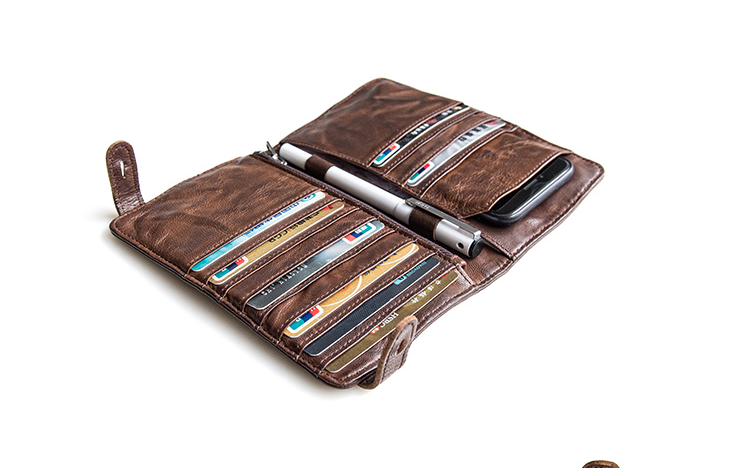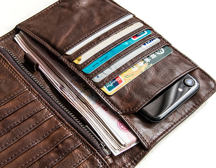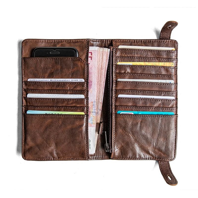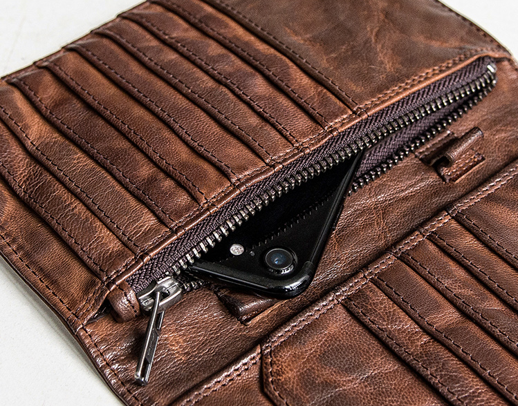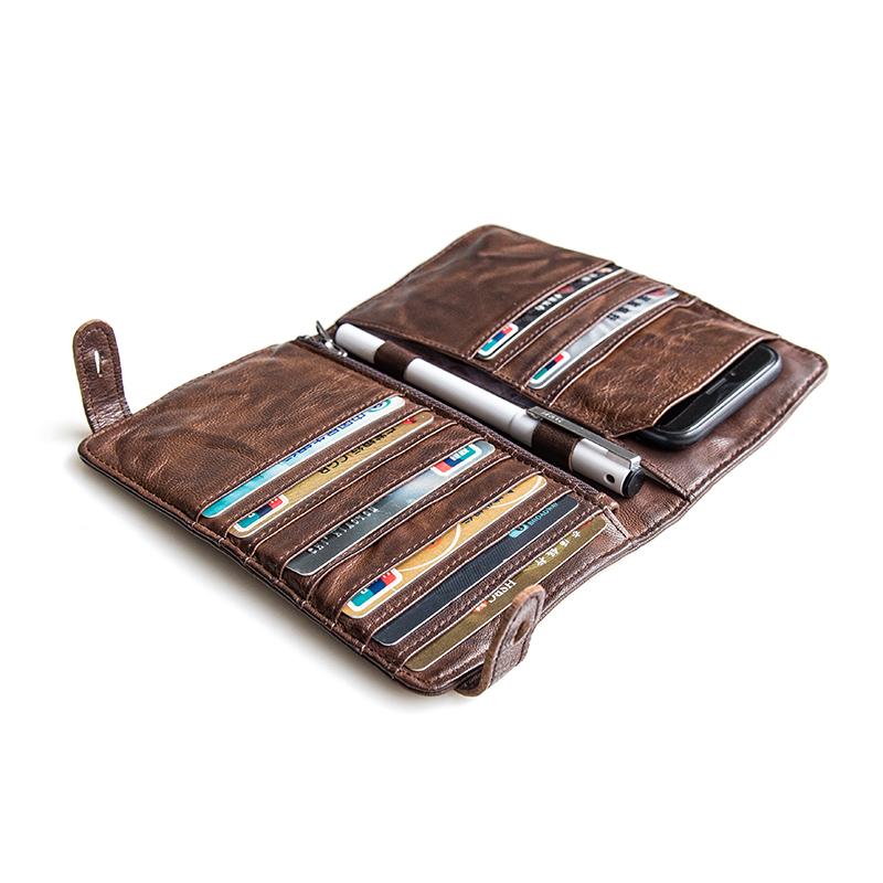 Slots: 1 full size bill slot, 12 card holders, 1 zipper slot, 2 phone slot