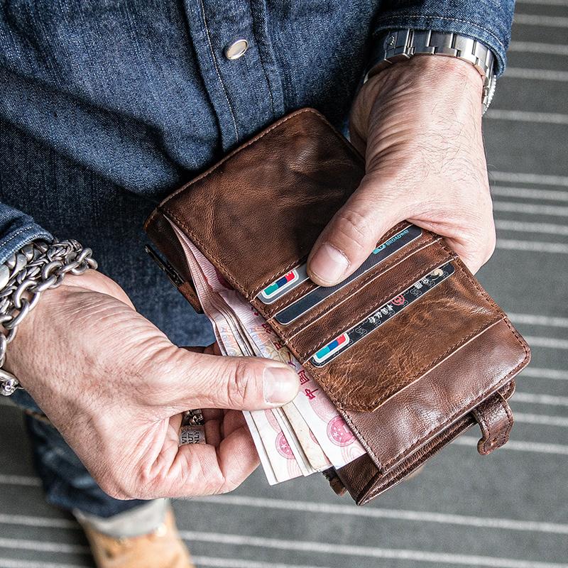 Style: Genuine Leather Mens Cool Short Leather Wallet Men Small Wallets Bifold for Men