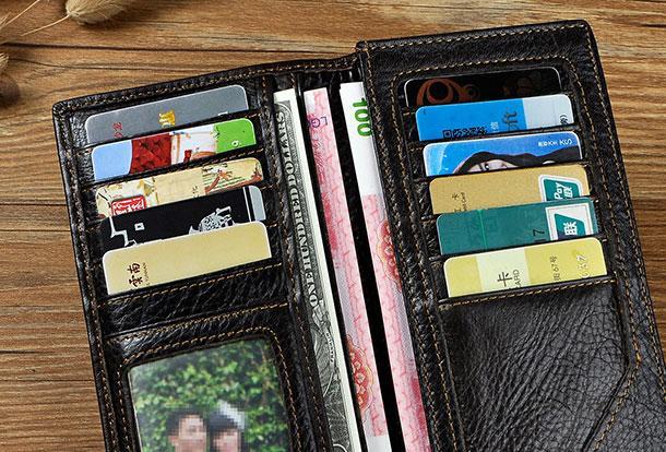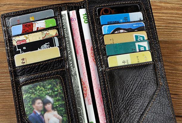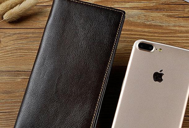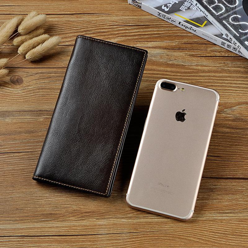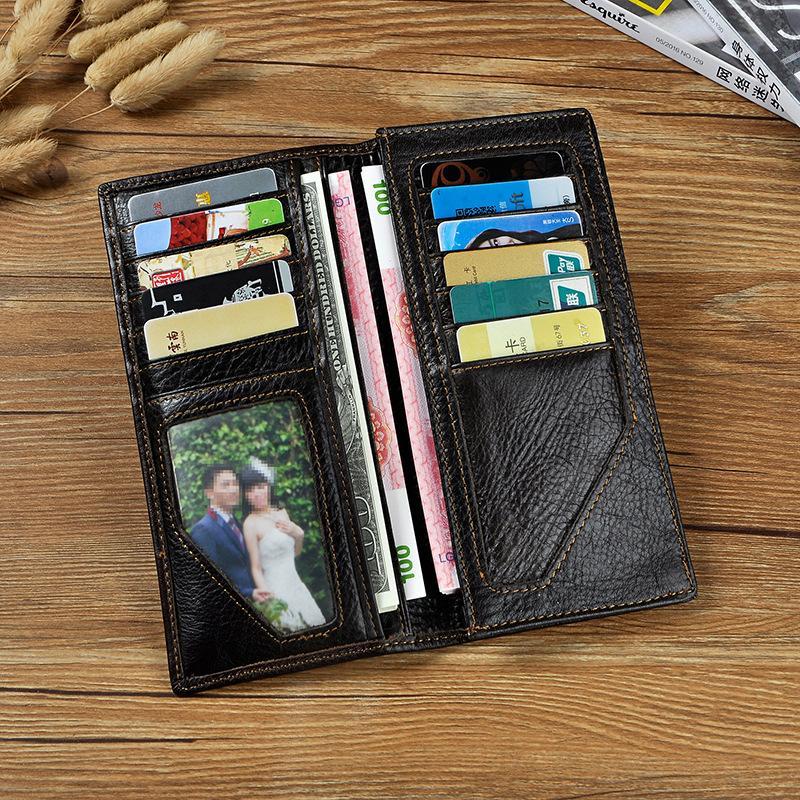 Design: Genuine Leather Mens Wallet Coffee Long Wallet for Men with Multi Cards