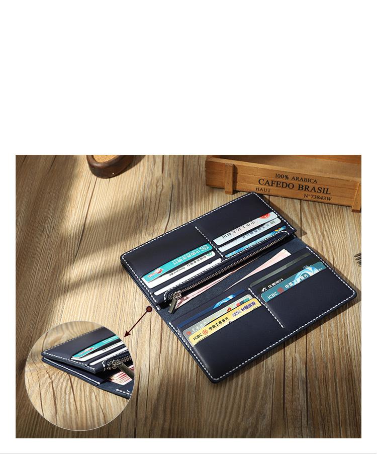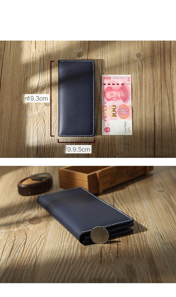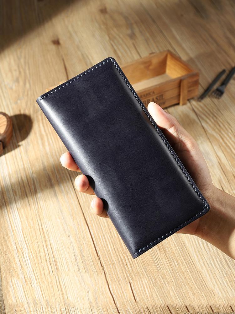 Style: Handmade Black Mens Bifold Long Wallets Personalized Black Leather Checkbook Wallets for Men