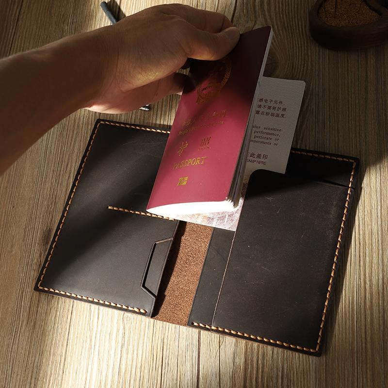Style: Handmade Coffee Mens Slim Travel Wallets Personalized Leather Passport Wallets for Men