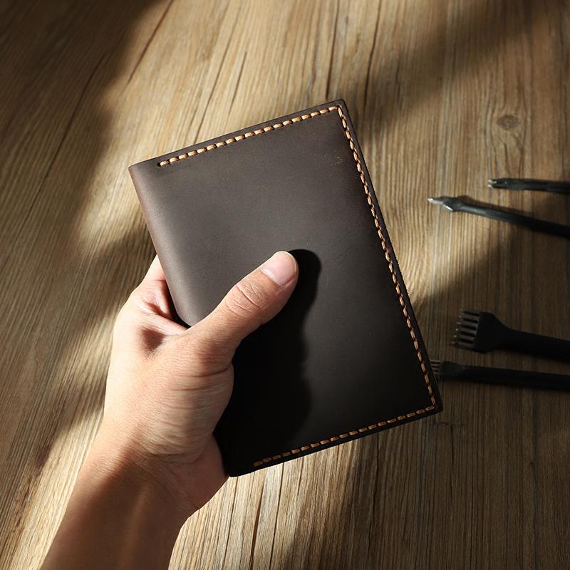 Design: Handmade Coffee Mens Slim Travel Wallets Personalized Leather Passport Wallets for Men