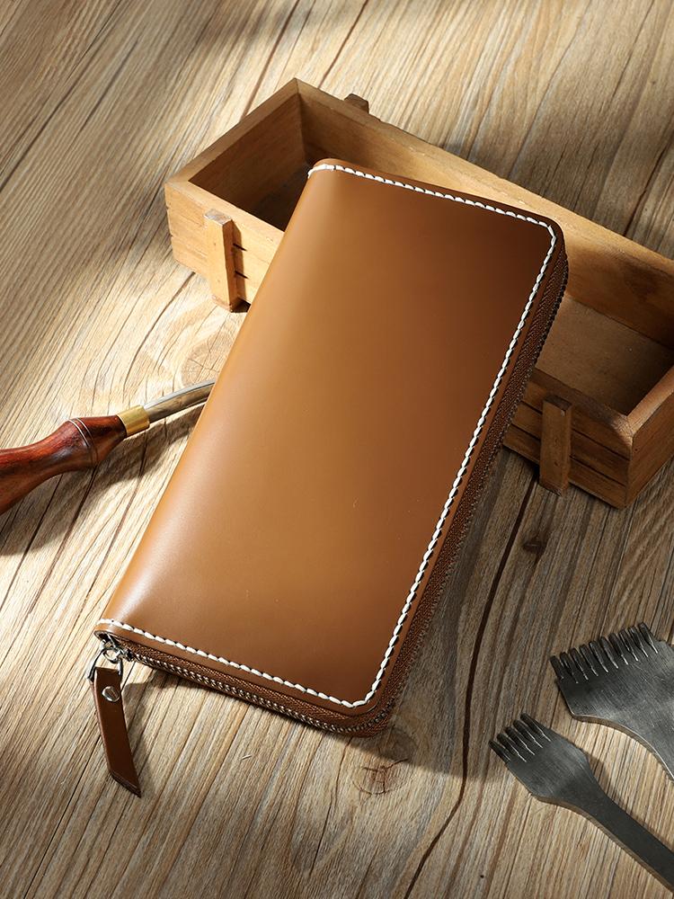 Design: Handmade Coffee Mens Zipper Long Wallets Personalized Leather Around Zipper Wallets for Men