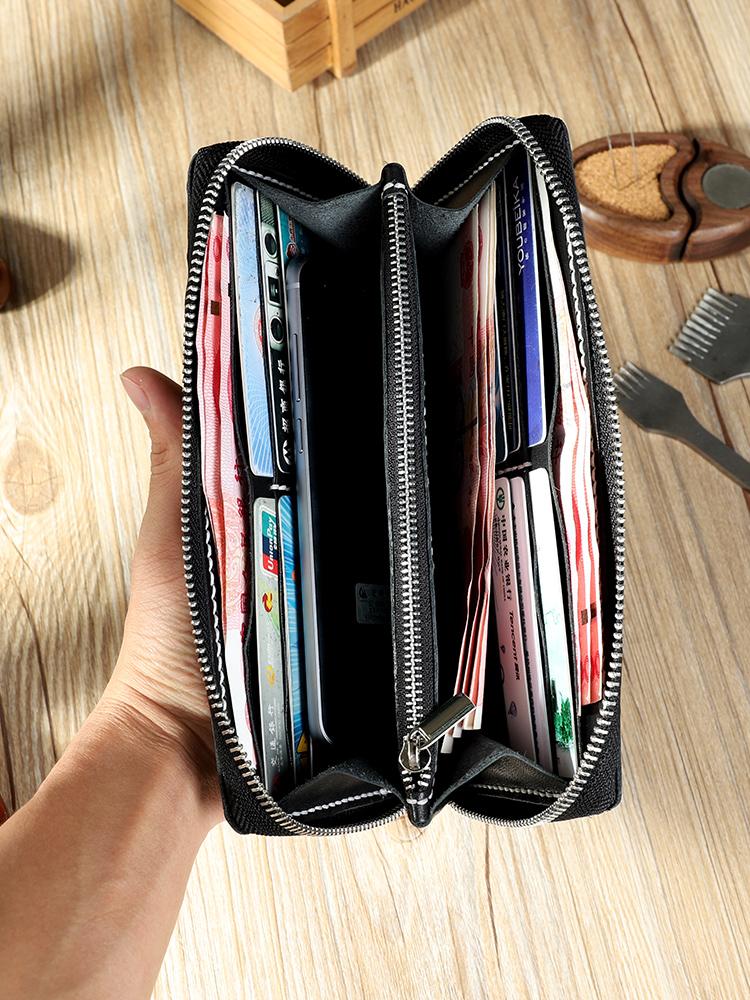 Style: Handmade Coffee Mens Zipper Long Wallets Personalized Leather Around Zipper Wallets for Men