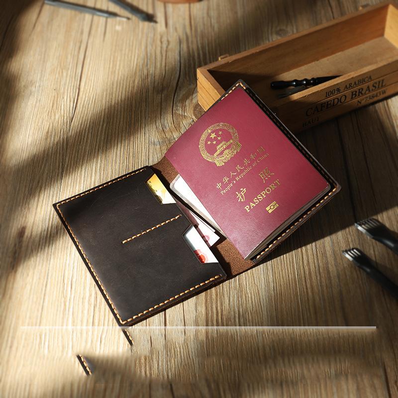 Style: Handmade Coffee Mens Slim Travel Wallets Personalized Leather Passport Wallets for Men