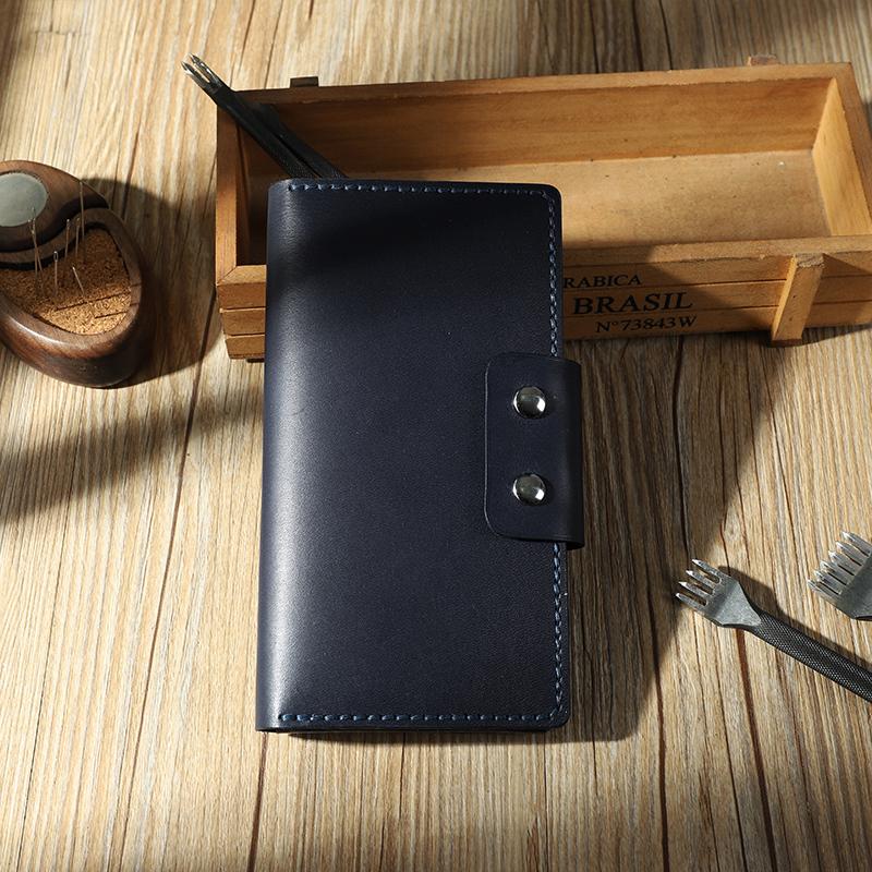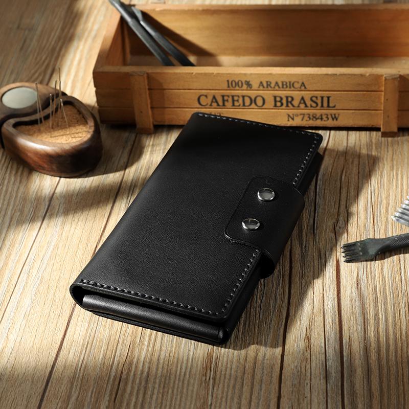 Style: Handmade Coffee Leather Mens Bifold Long Wallets Personalized Black Checkbook Leather Wallets for Men