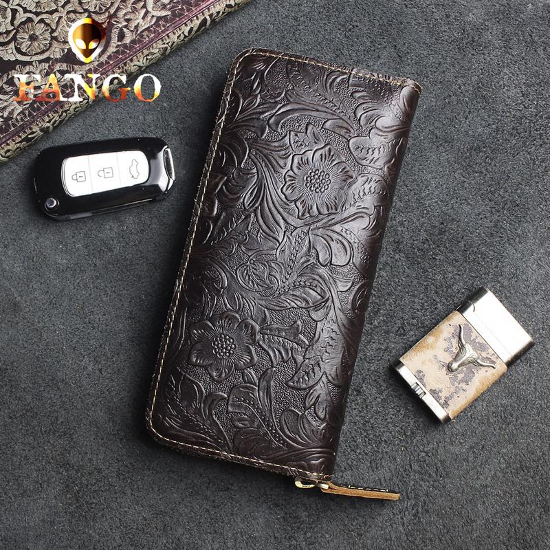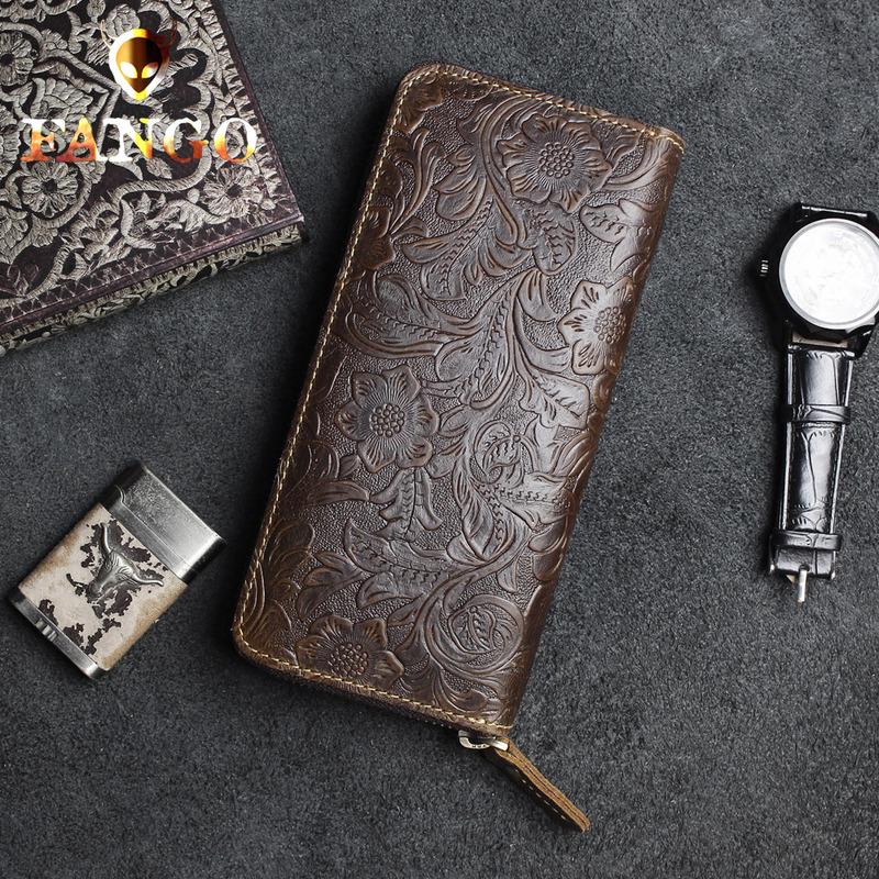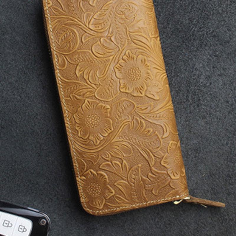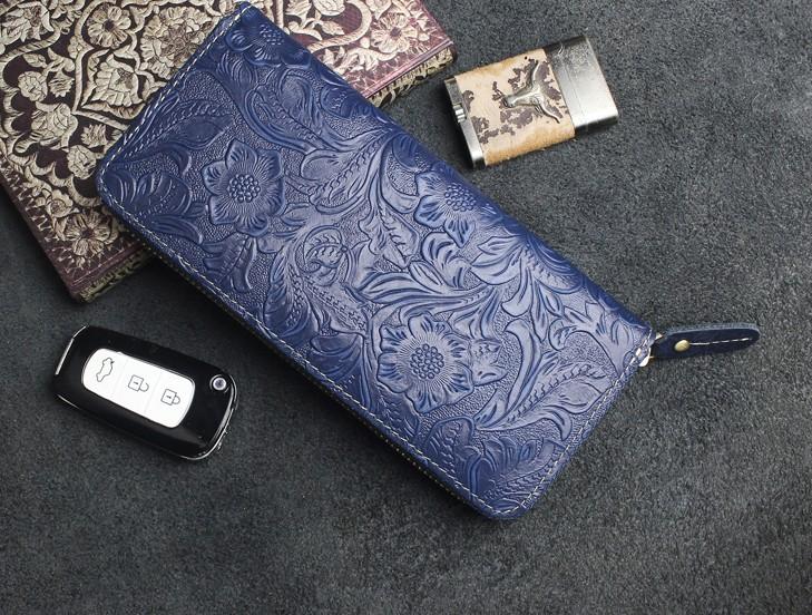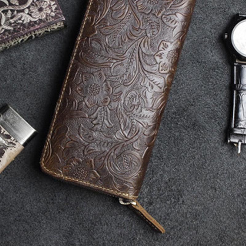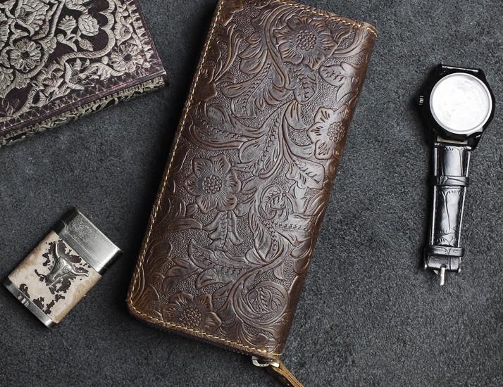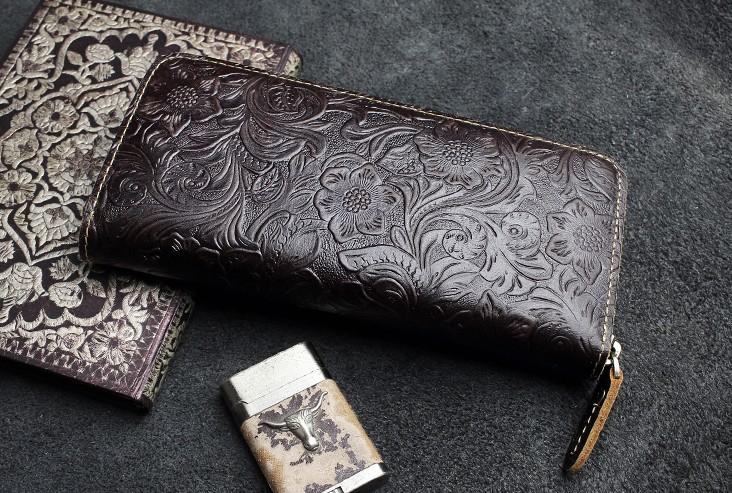 Design: Handmade Leather Floral Mens Cool Travel Long Wallet Card Holder Card Slim Clutch Wallets for Men