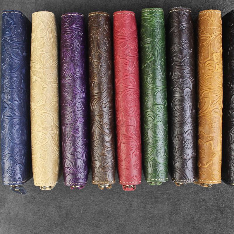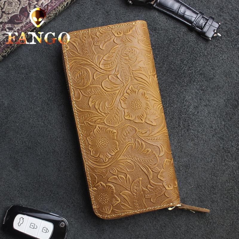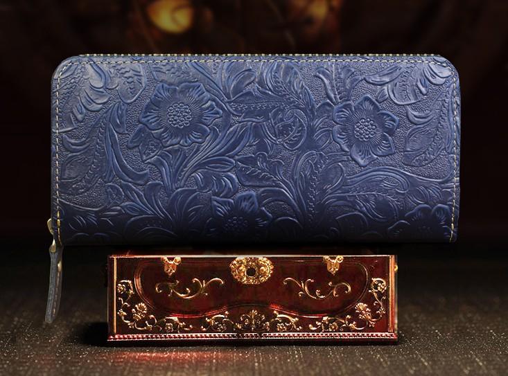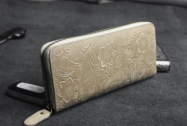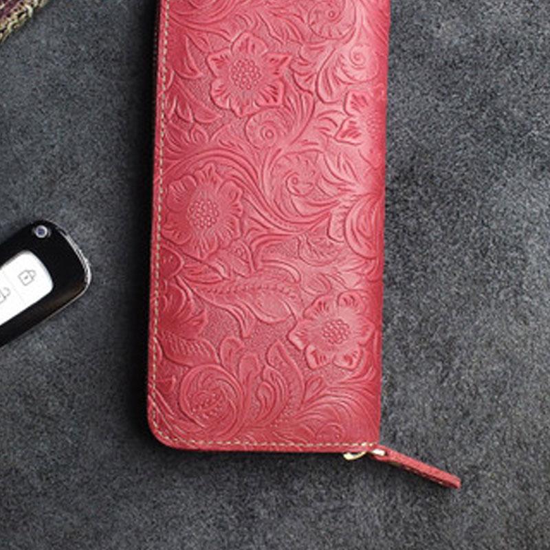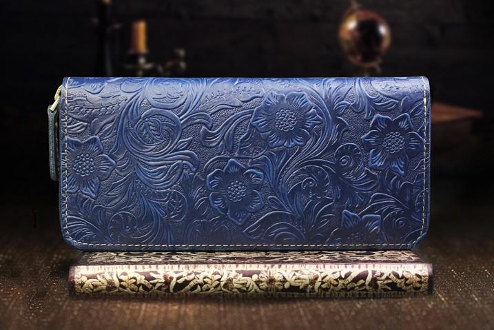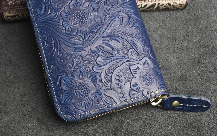Design: Handmade Leather Floral Mens Cool Travel Long Wallet Card Holder Card Slim Clutch Wallets for Men