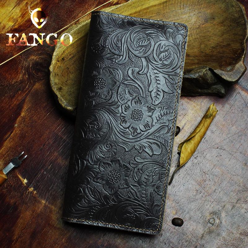 Design: Handmade Leather Floral Mens Cool Travel Long Wallet Card Holder Card Slim Clutch Wallets for Men