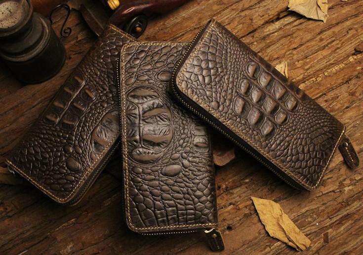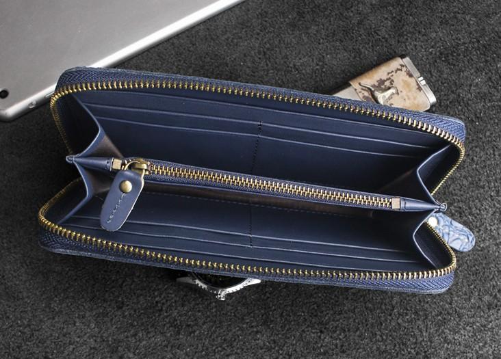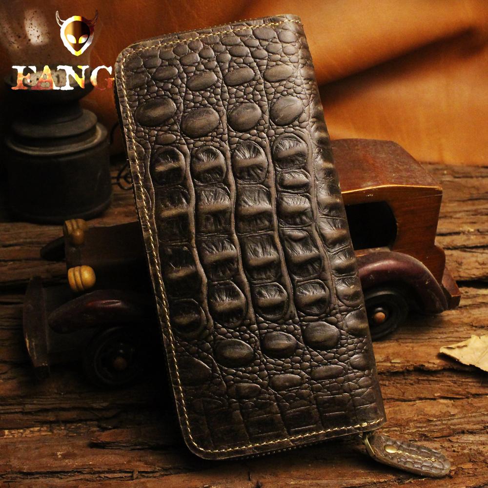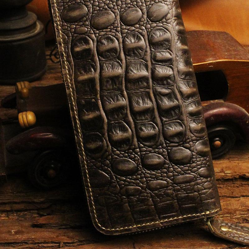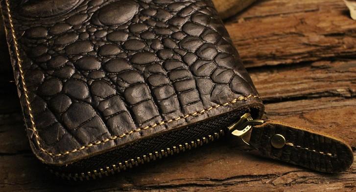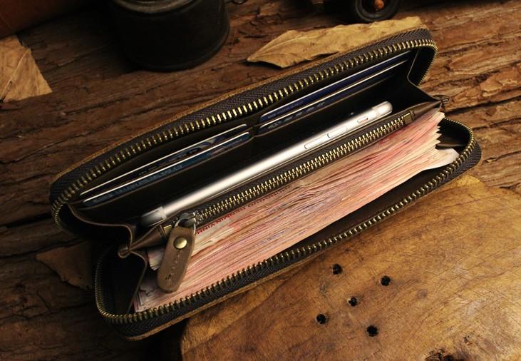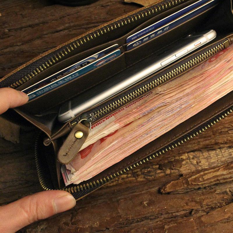Design: Handmade Leather Floral Mens Cool Zipper Phone Travel Long Wallet Card Holder Card Slim Clutch Wallets for Men