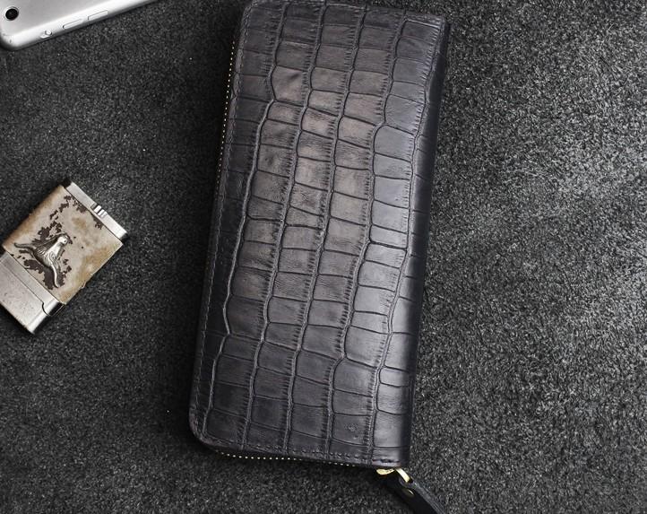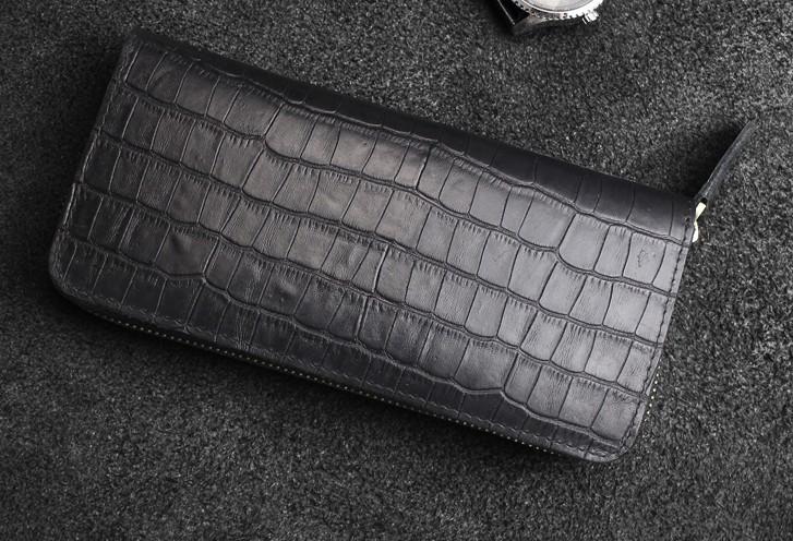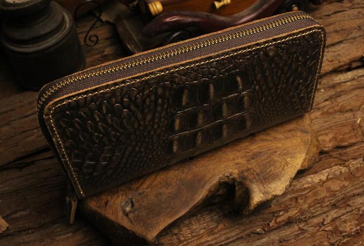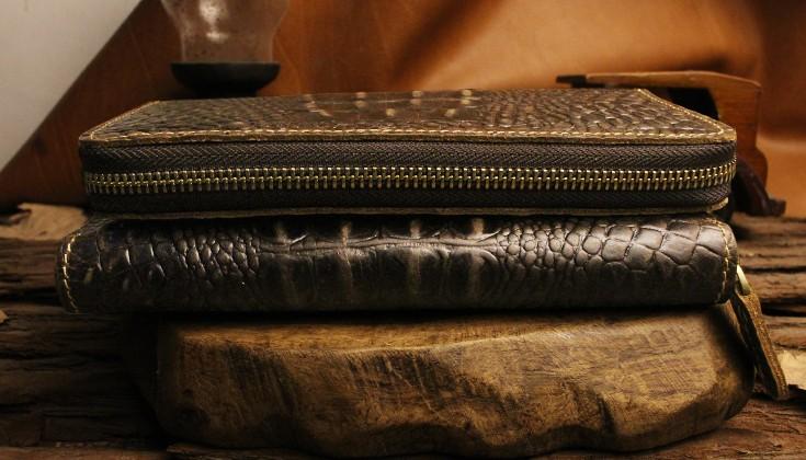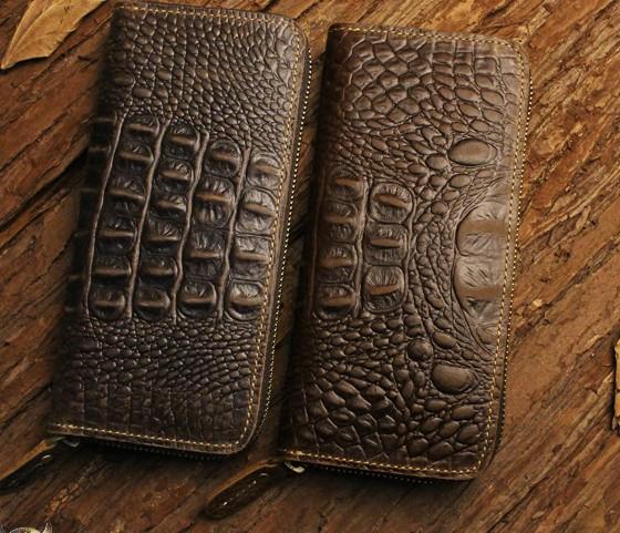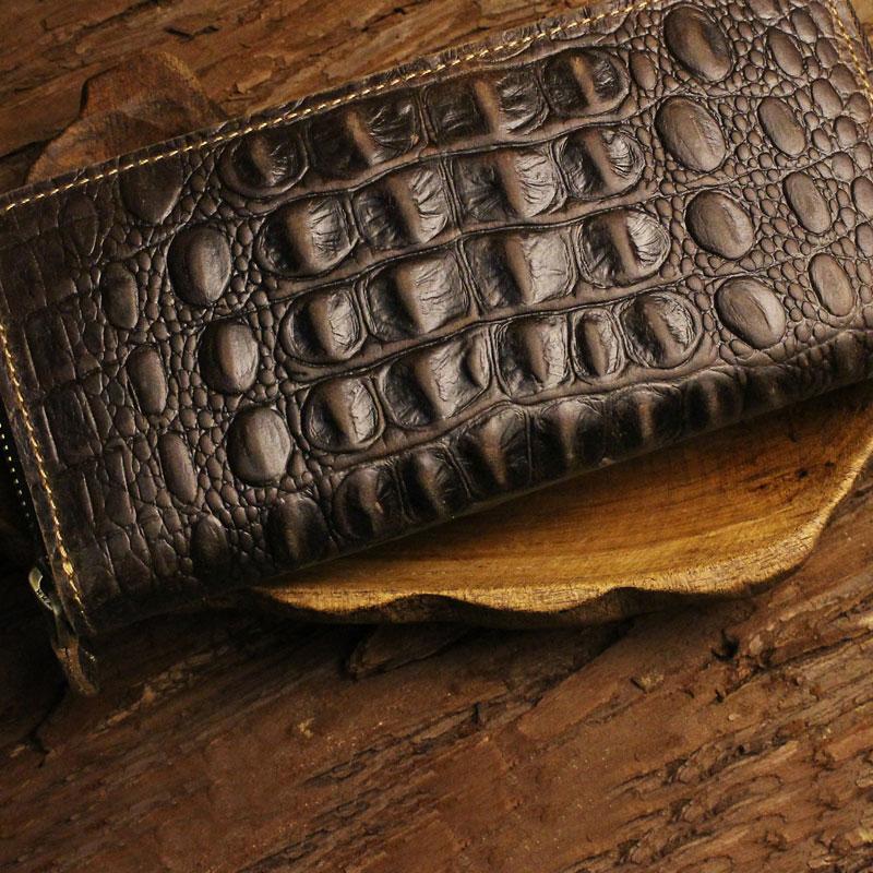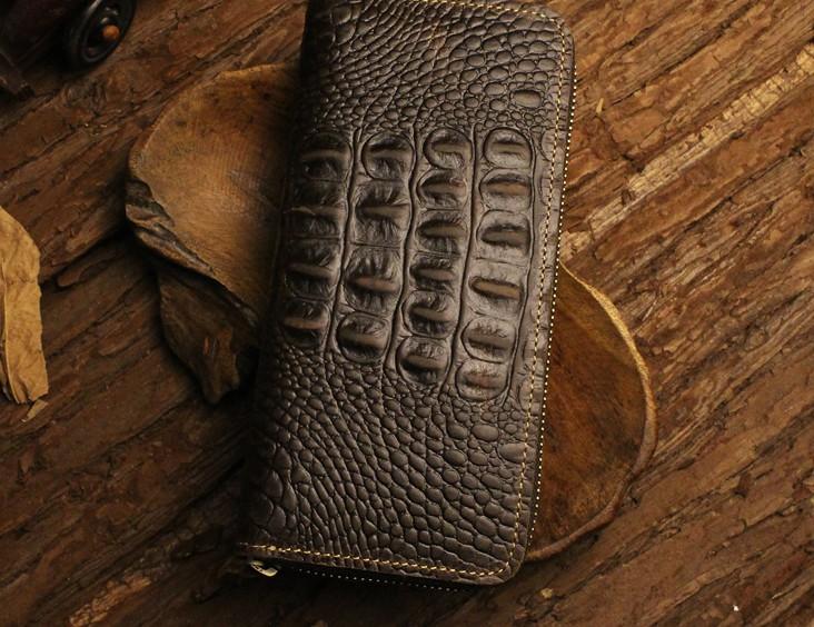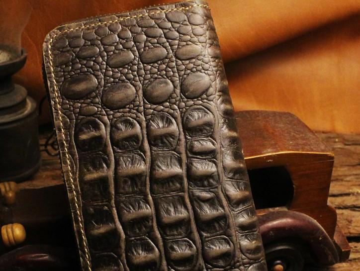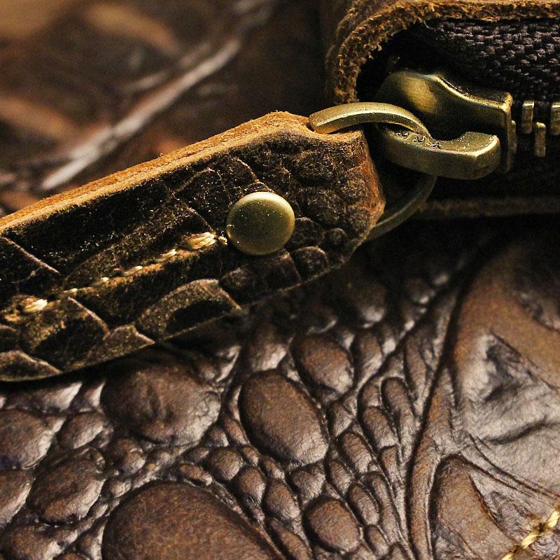 Design: Handmade Leather Floral Mens Cool Zipper Phone Travel Long Wallet Card Holder Card Slim Clutch Wallets for Men