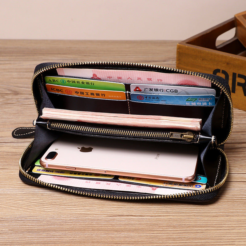 Style: Cool Leather Floral Tooled Zipper Around Wallet Handmade Clutch Zipper Wallet for Men