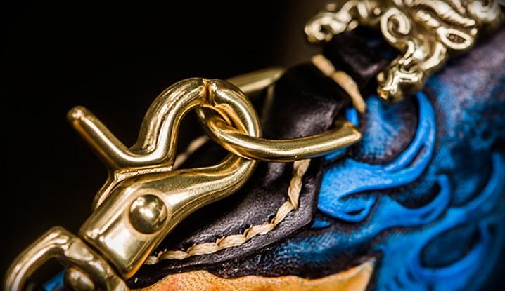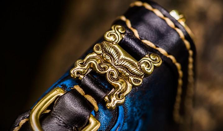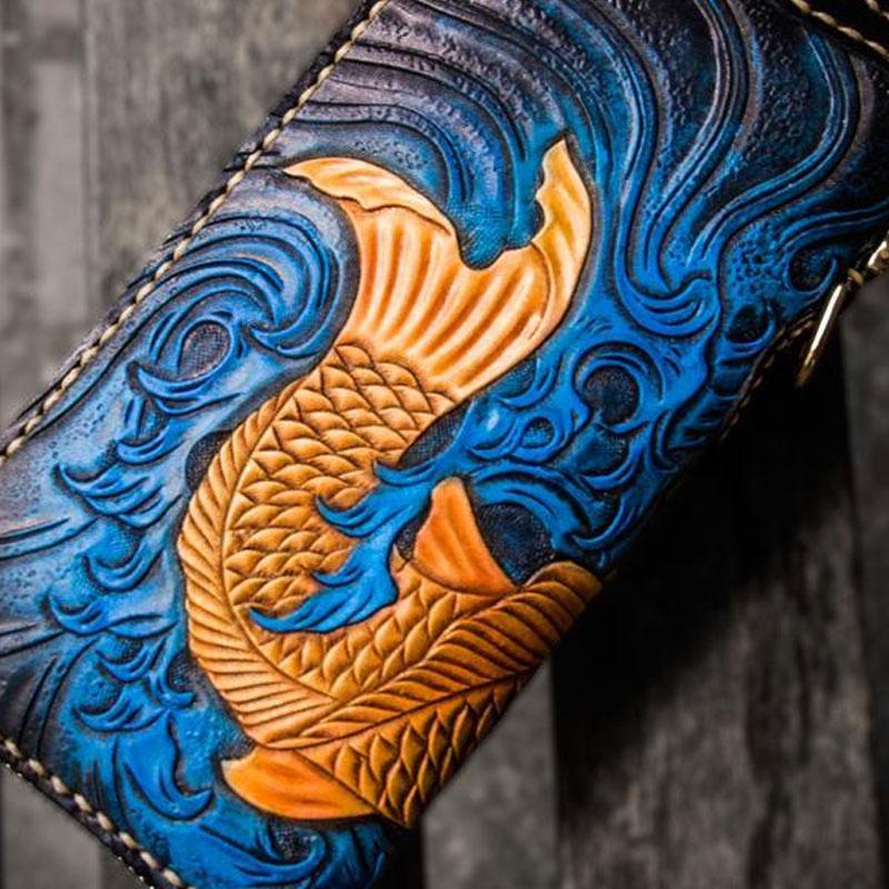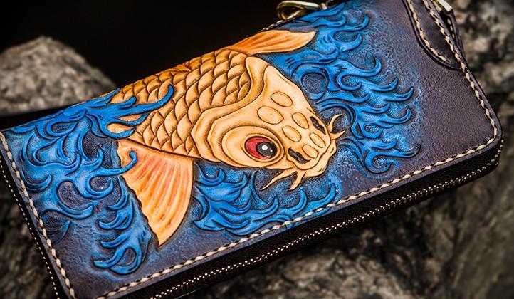 Design: Handmade Leather Men Tooled Carp Cool Leather Wallet Long Phone Wallets for Men