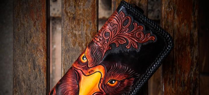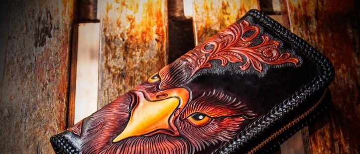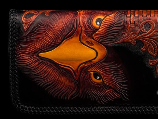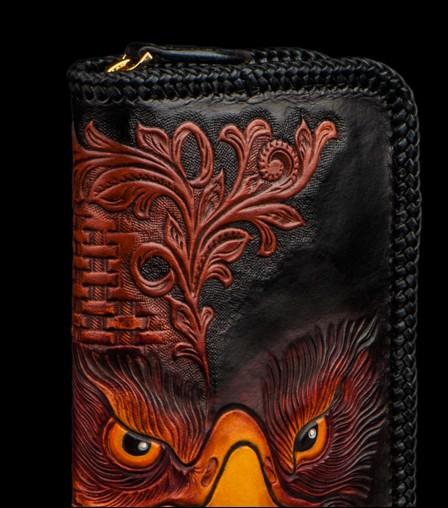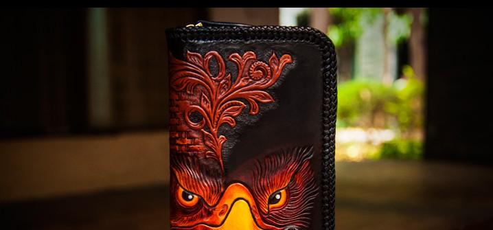 Design: Handmade Leather Men Tooled Eagle Cool Leather Wallet Long Phone Clutch Wallets for Men
