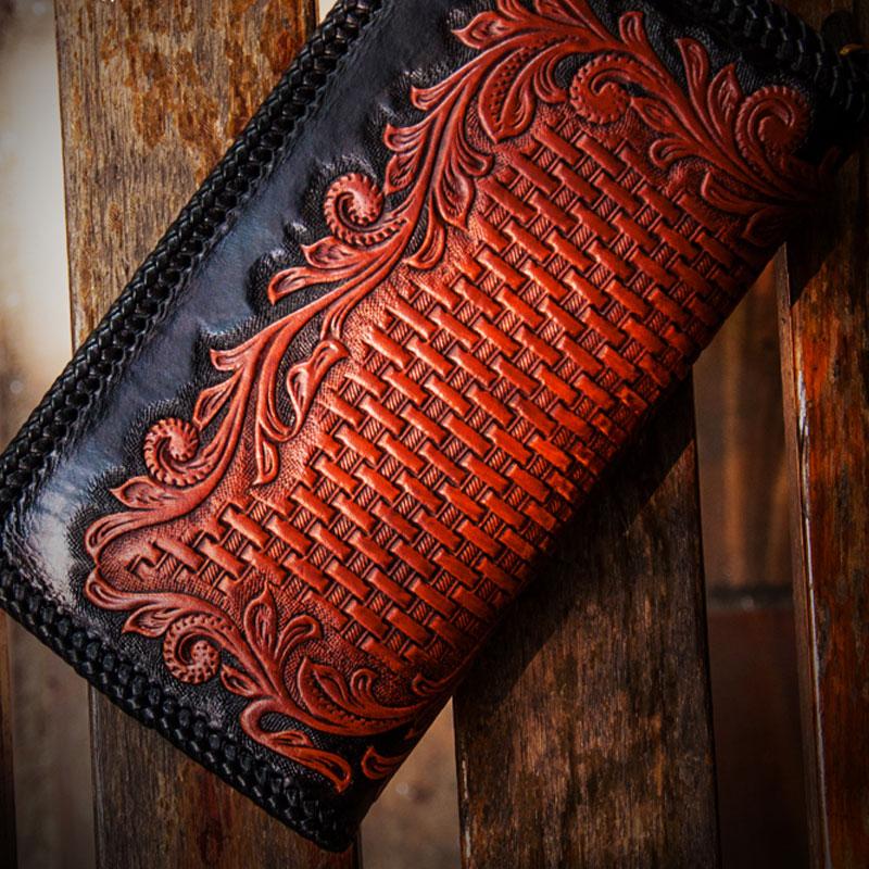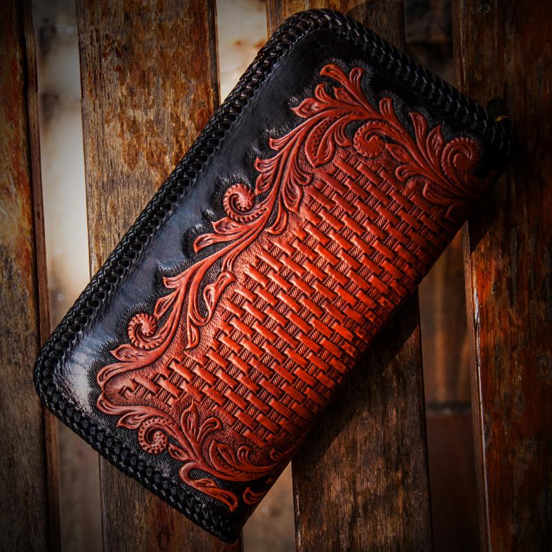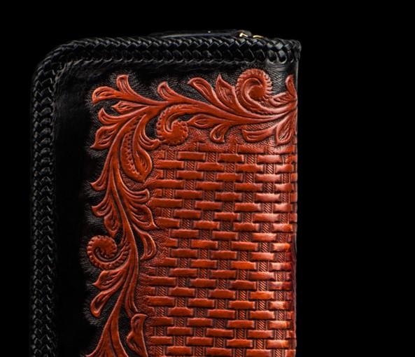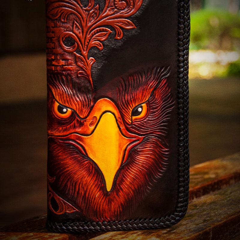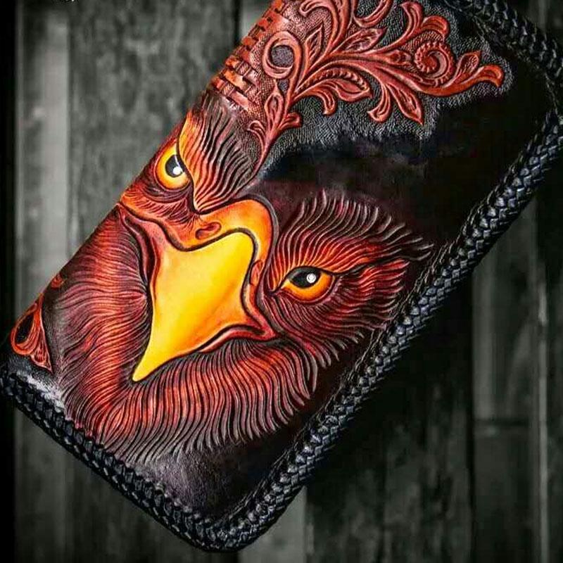 Style: Handmade Leather Men Tooled Eagle Cool Leather Wallet Long Phone Clutch Wallets for Men