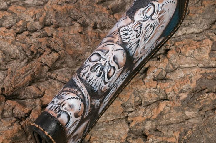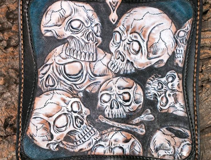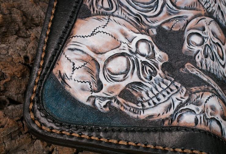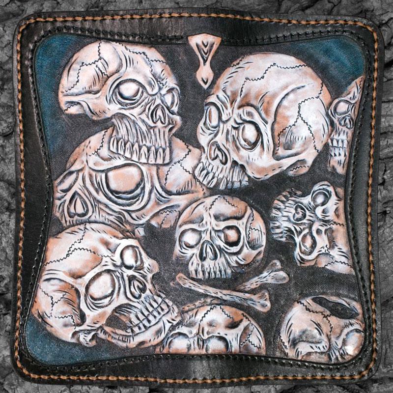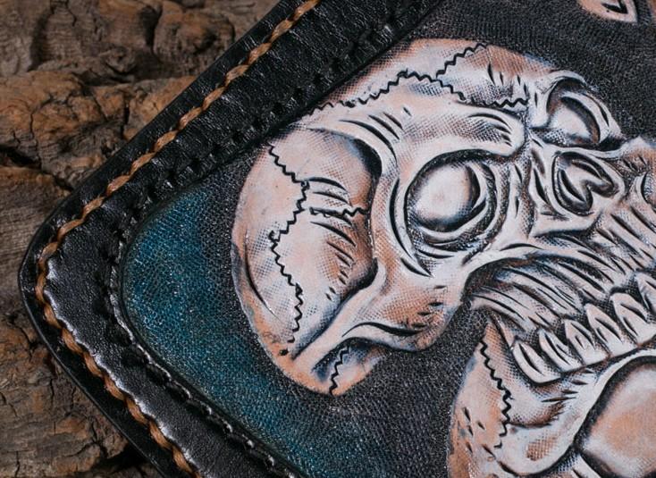 Design: Handmade Leather Men Tooled Skull Halley Cool Leather Wallet Long Phone Wallets for Men