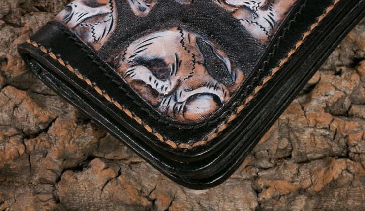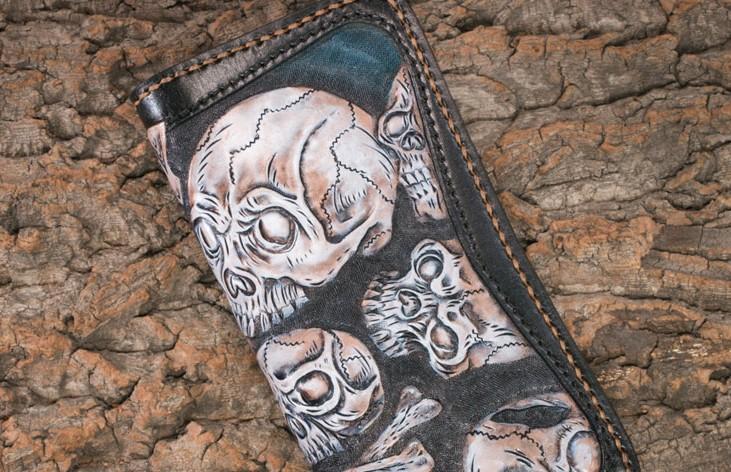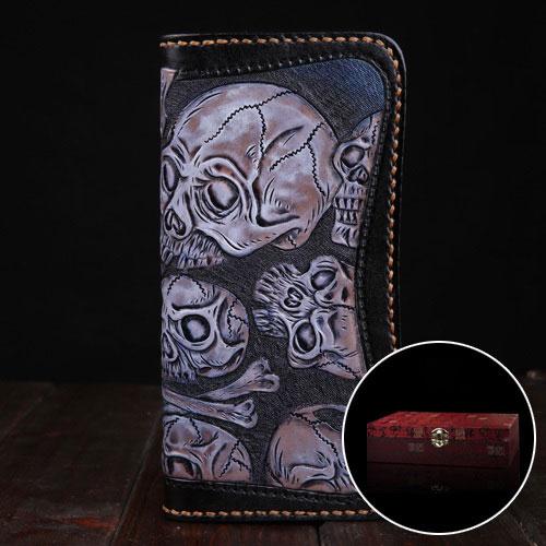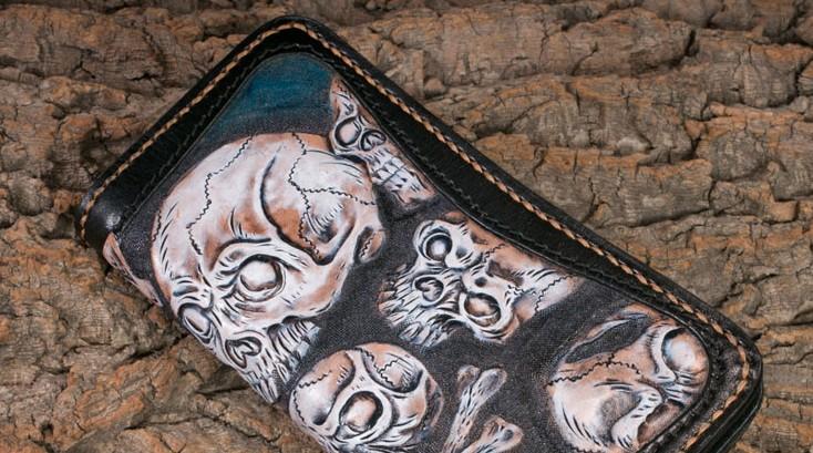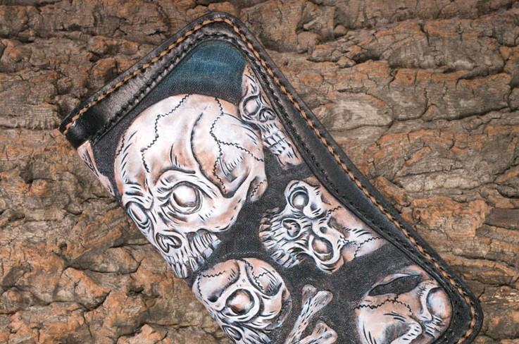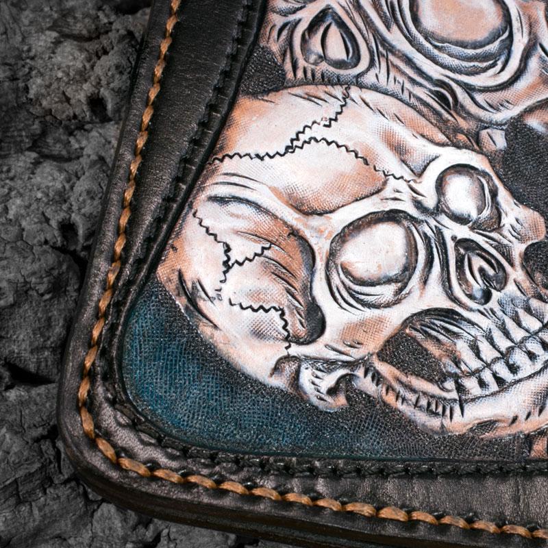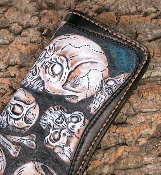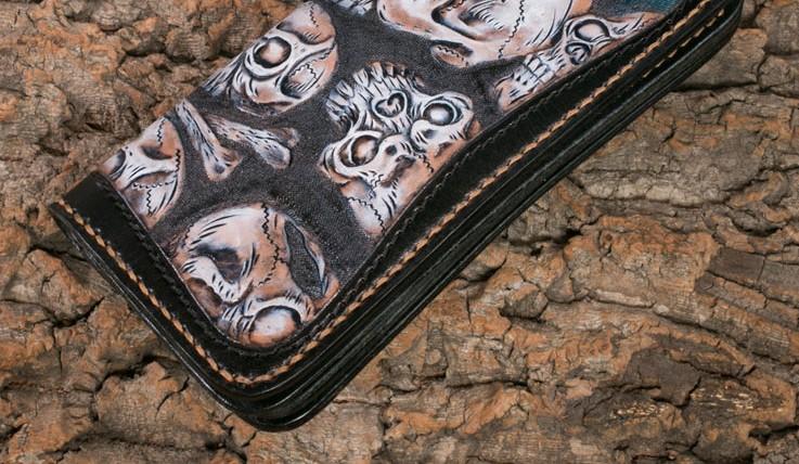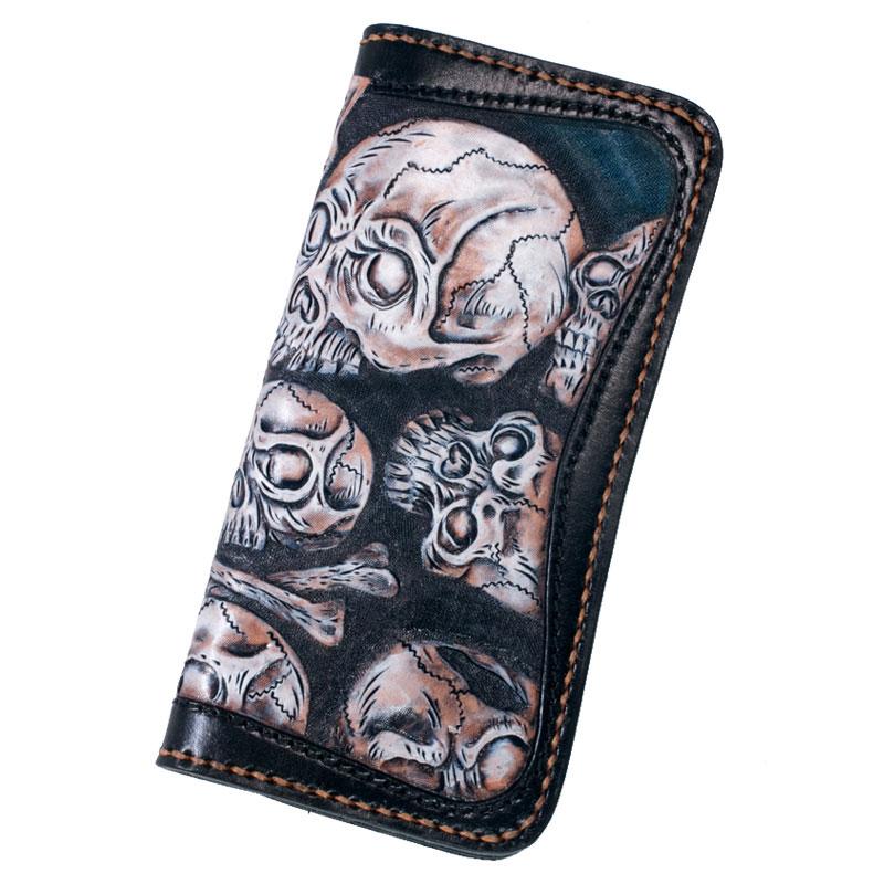 Style: Handmade Leather Men Tooled Skull Halley Cool Leather Wallet Long Phone Wallets for Men
