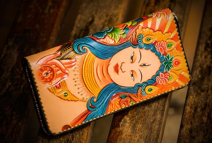 Design: Handmade Leather Men Tooled White Tara Cool Leather Wallet Long Phone Clutch Wallets for Men