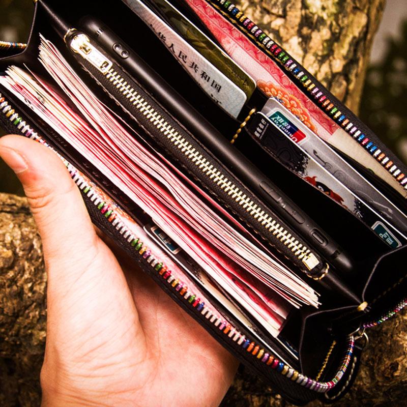 Slots: 2 full size bill slot, 8 card holders, 1 zipper slot