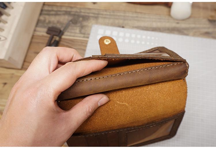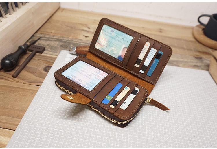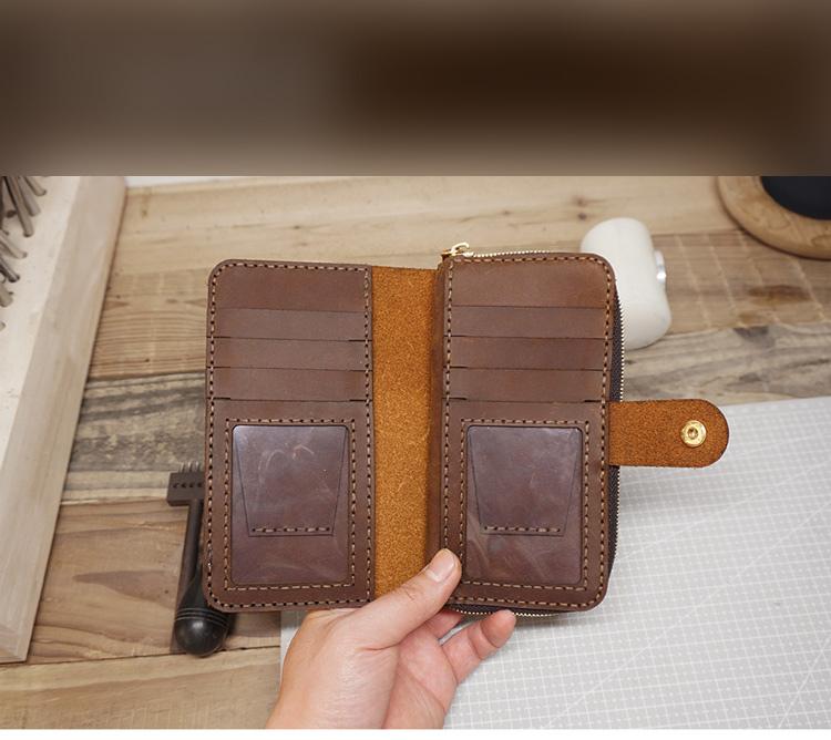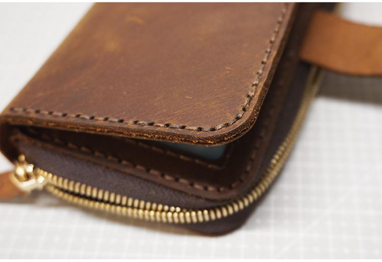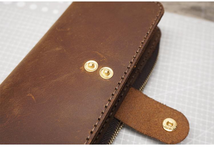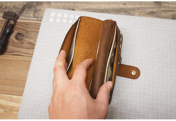 Design: Handmade Leather Mens Bifold Long Wallet Clutch Checkbook Wallet Lots Cards Long Wallet for Men