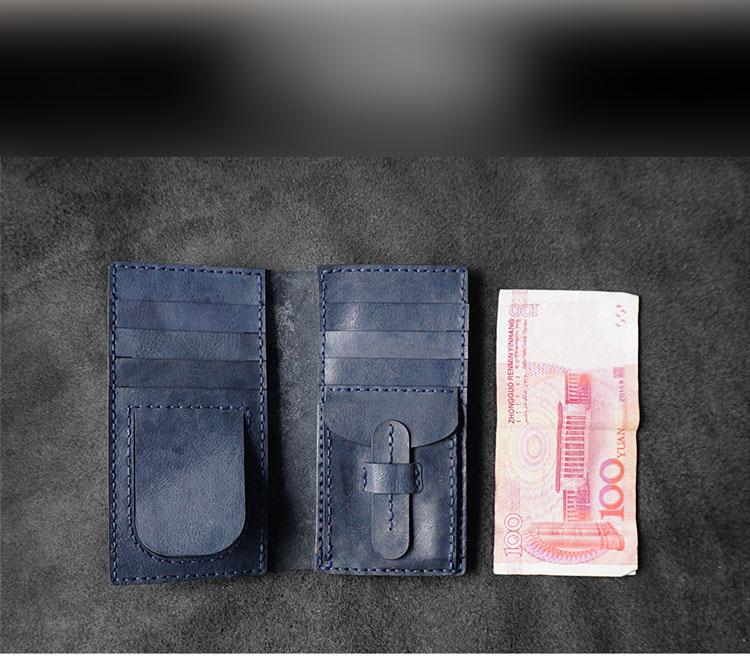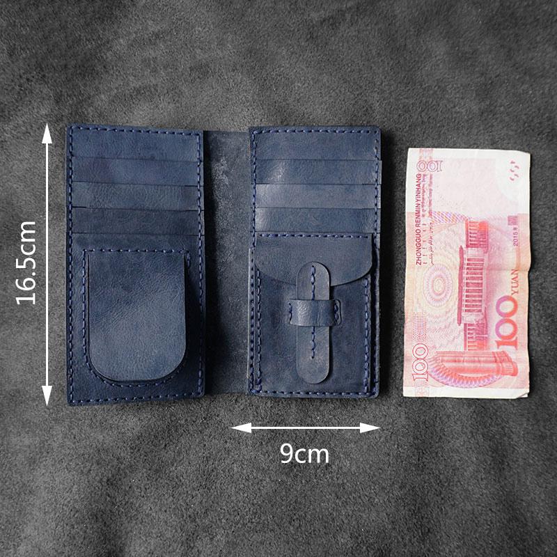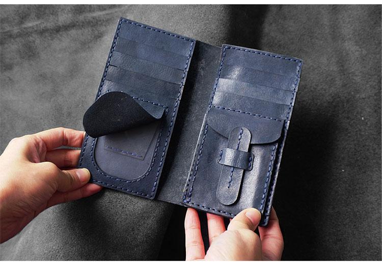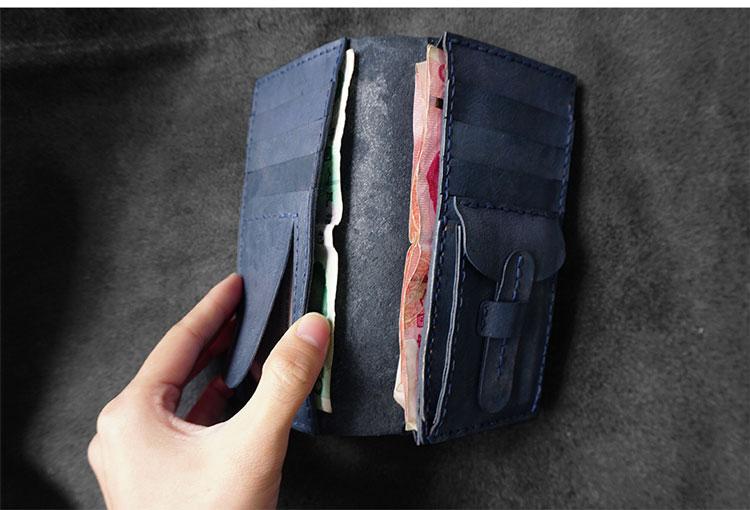 Design: Handmade Blue Leather Mens Bifold Long Wallets Checkbook Wallet Lots Cards Long Wallet for Men