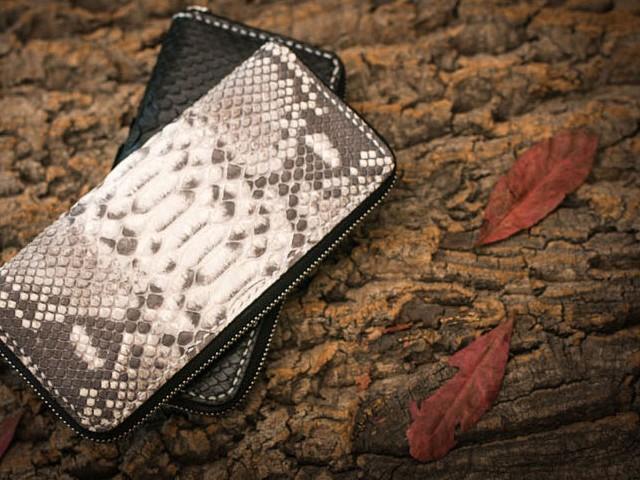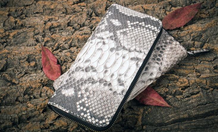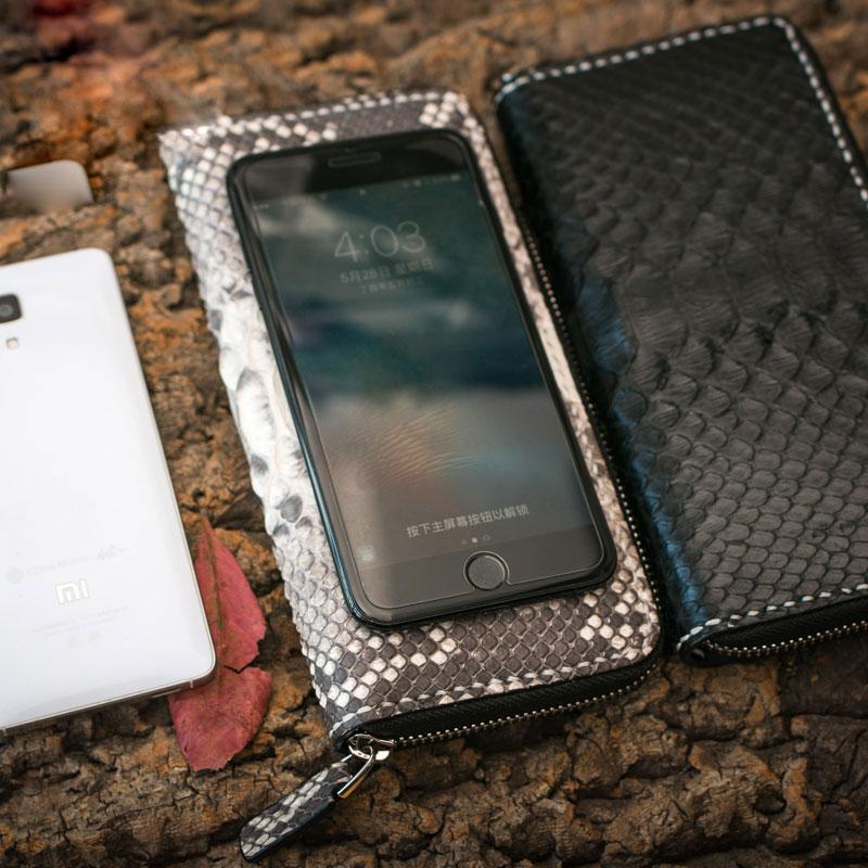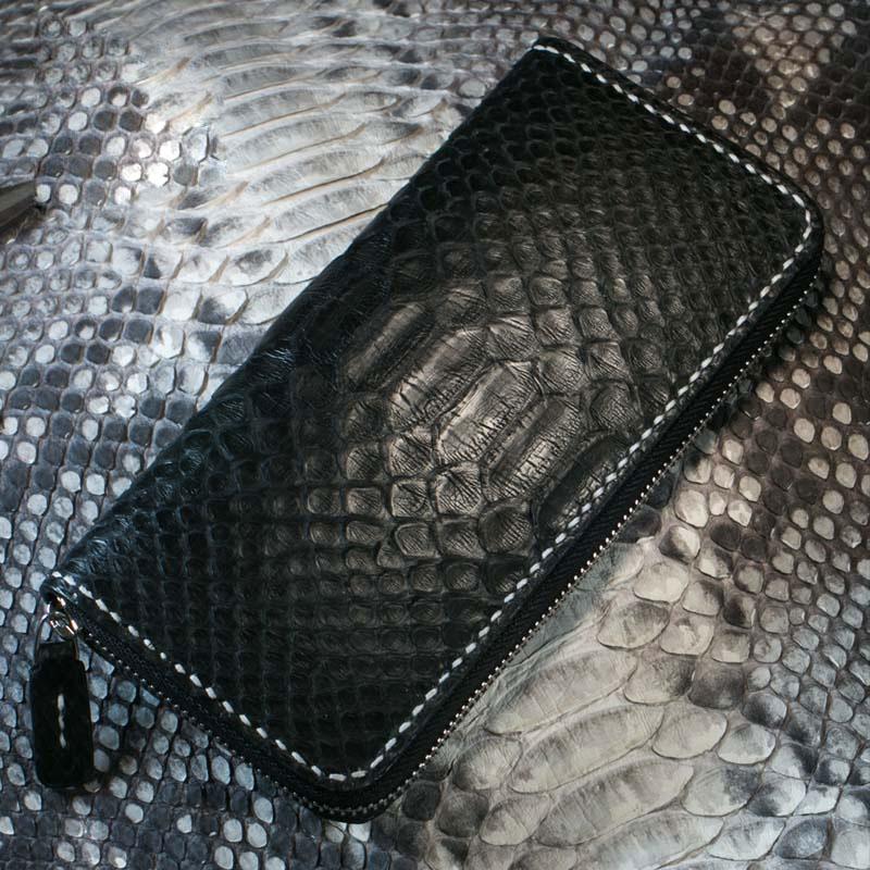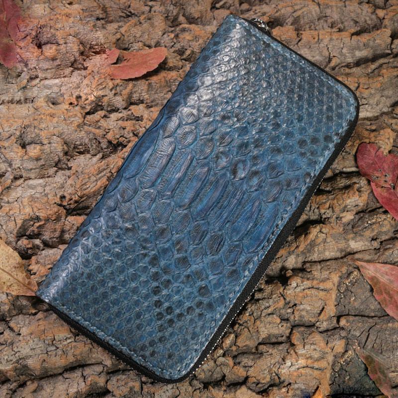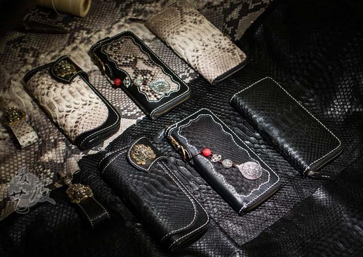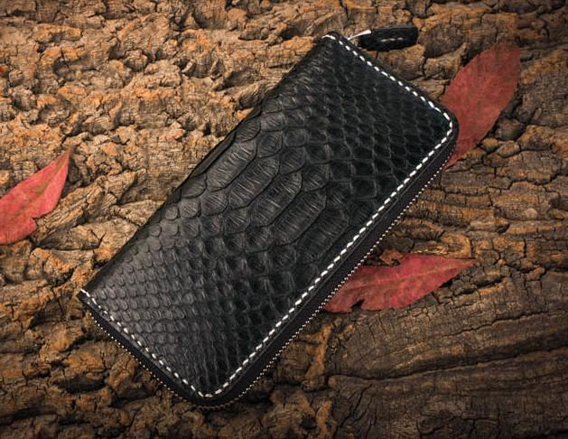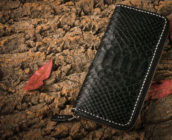 Design: Handmade Leather Mens Clutch Wallet Cool Boa Skin Wallet Long Zipper Wallets for Men