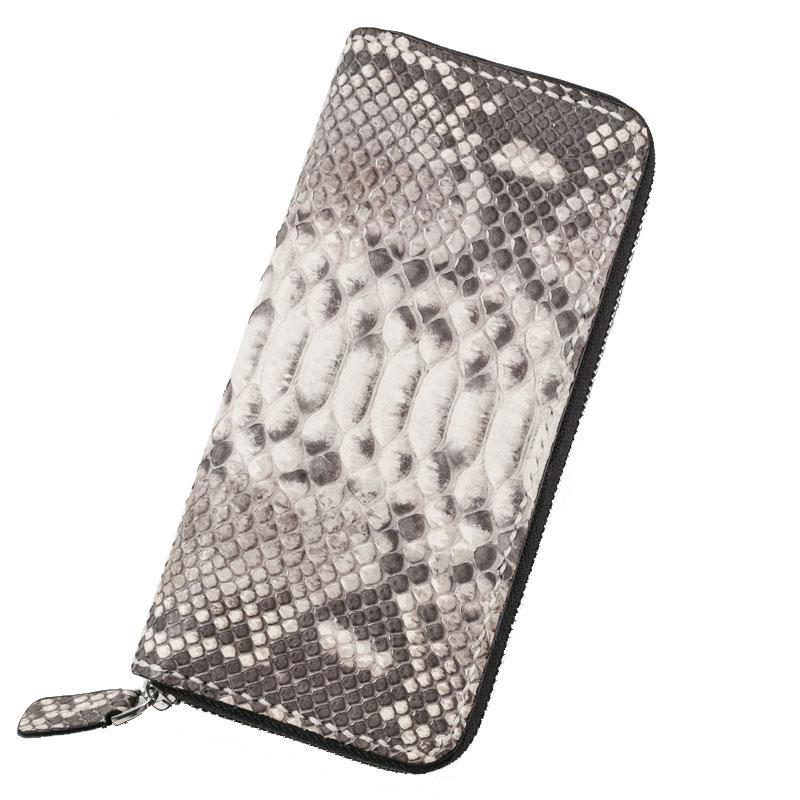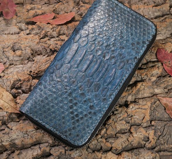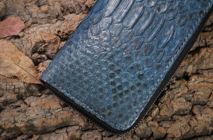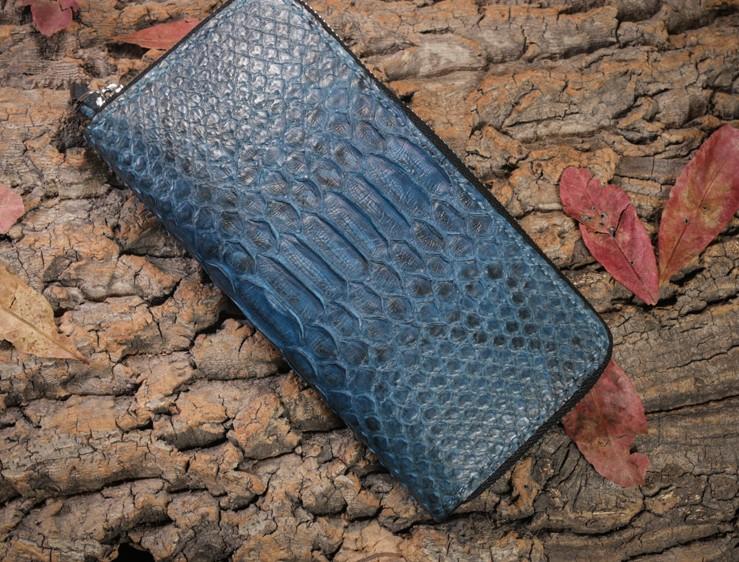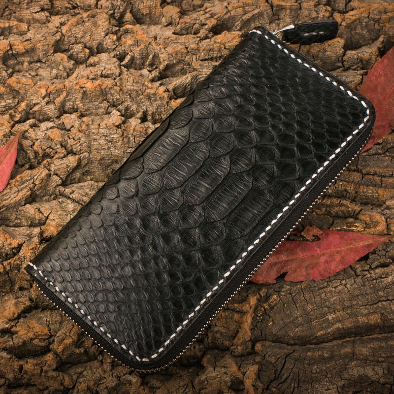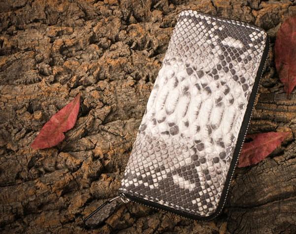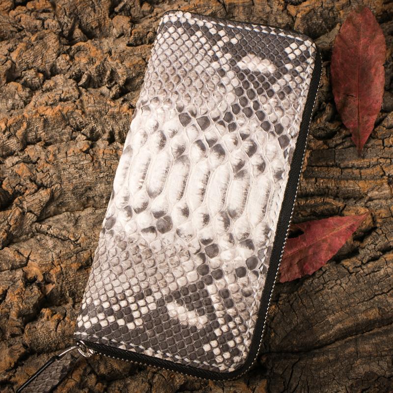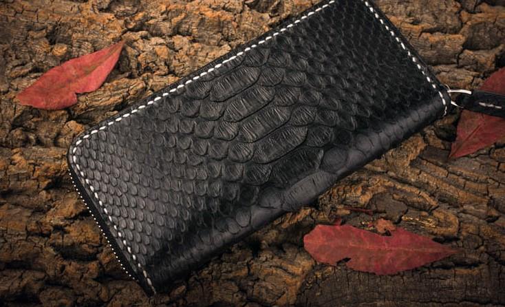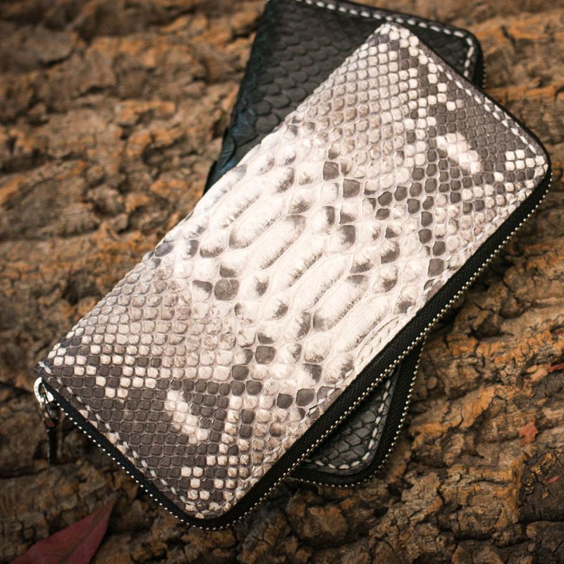Handmade Leather Mens Clutch Wallet Cool Boa Skin Wallet Long Zipper Wallets for Men