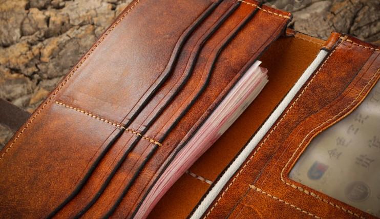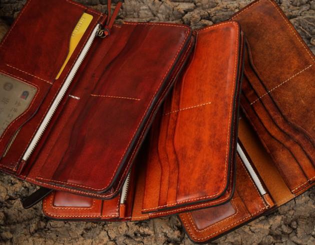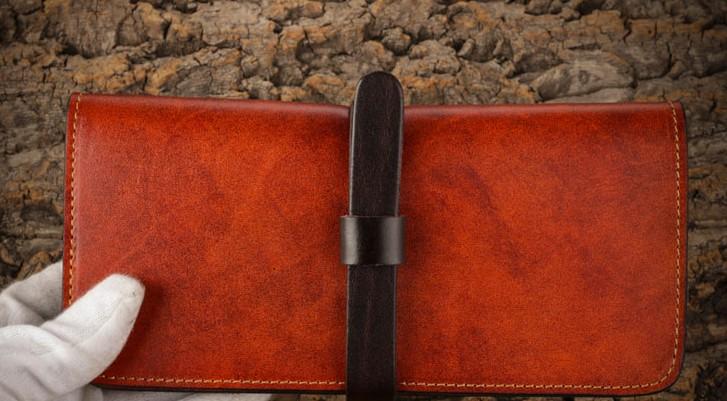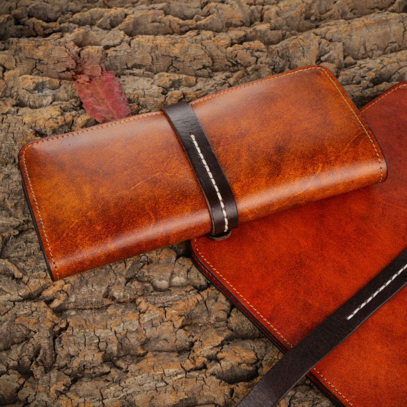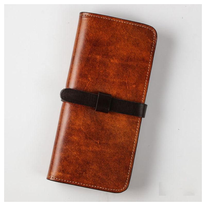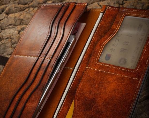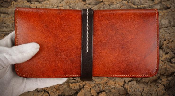 Design: Handmade Leather Mens Clutch Wallet Cool Leather Wallet Long Phone Wallets for Men