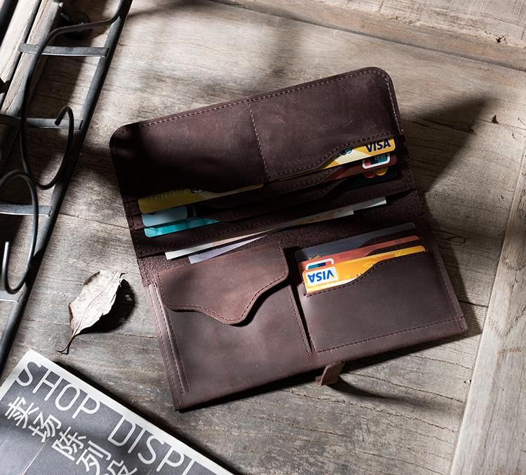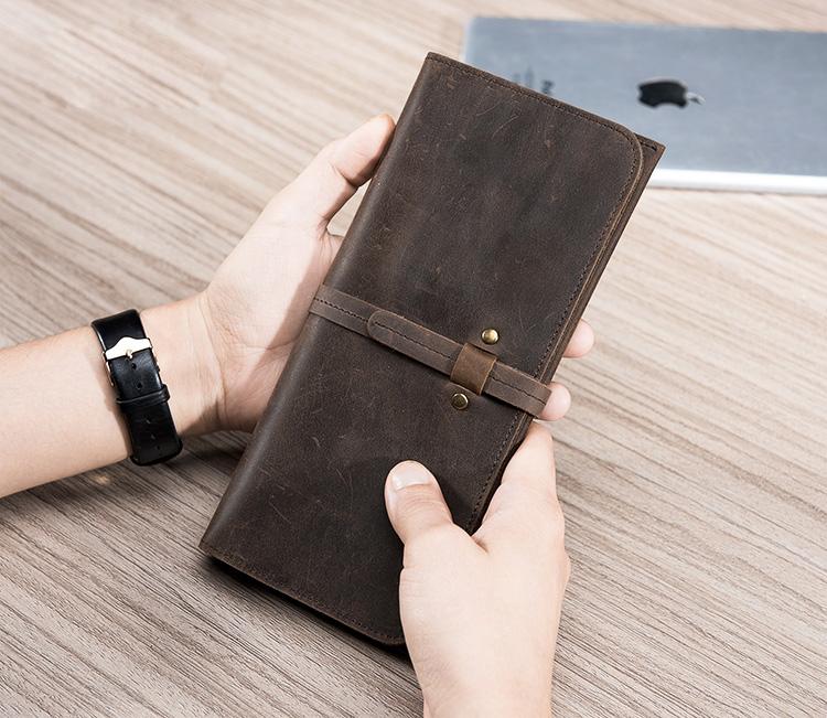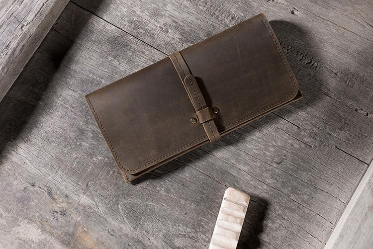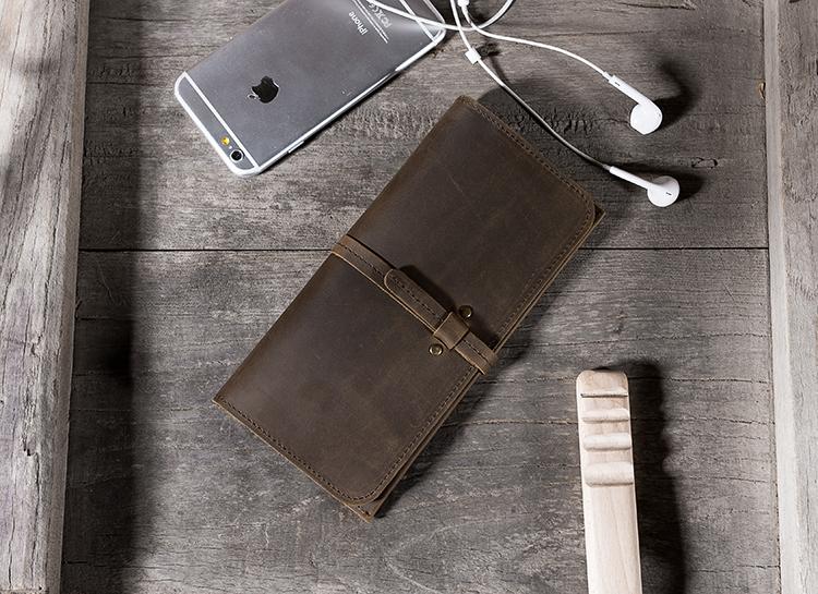 Handmade Leather Mens Clutch Wallet Cool Leather Wallet Long Phone Wallets for Men