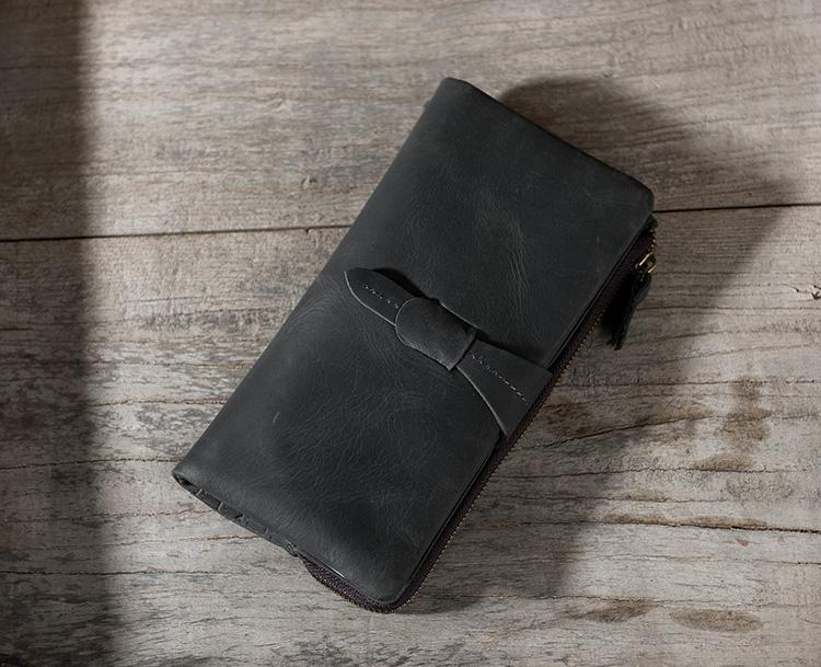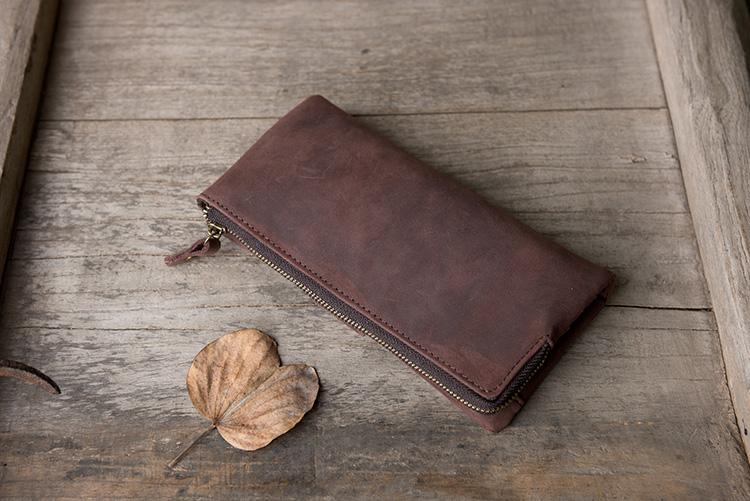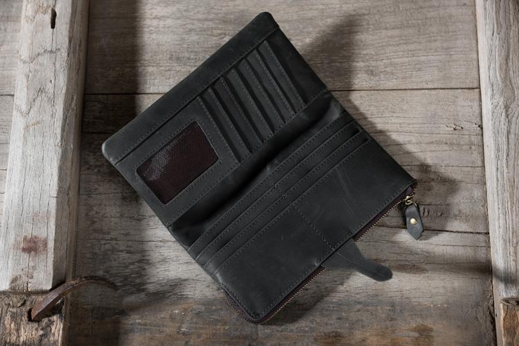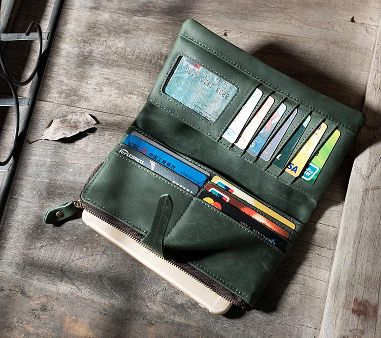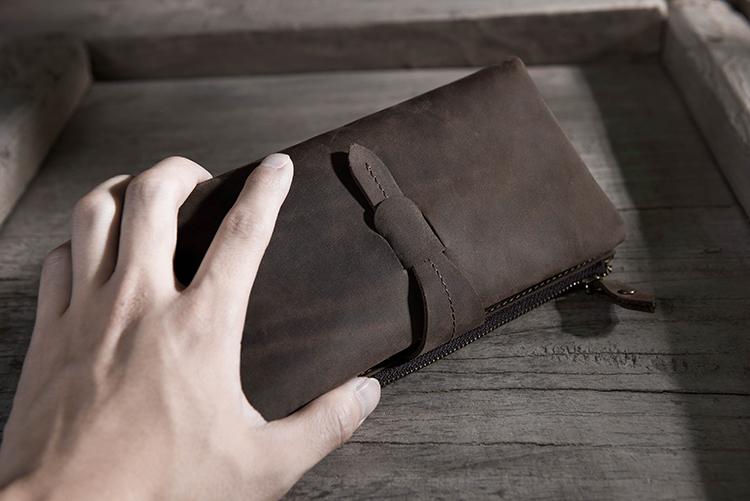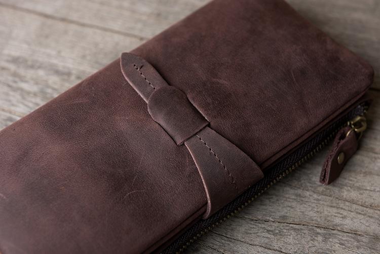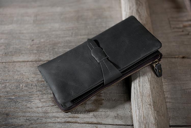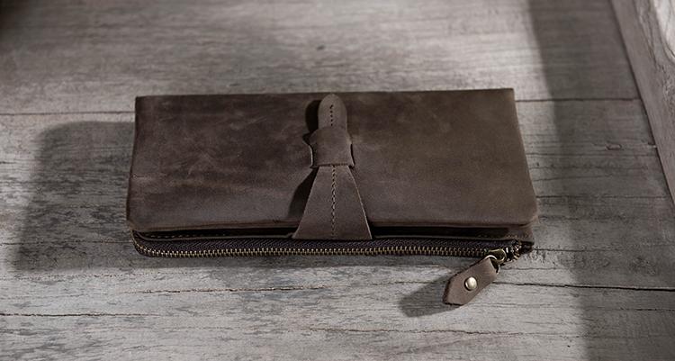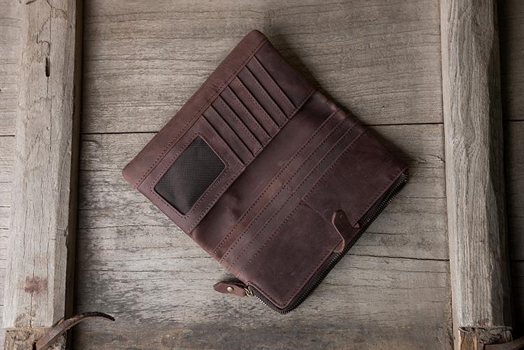 Design: Handmade Leather Mens Clutch Wallet Cool Leather Wallet Long Phone Wallets for Men