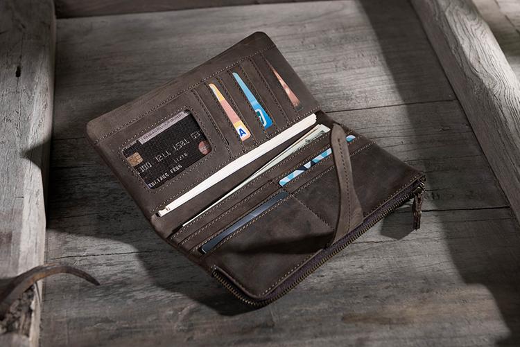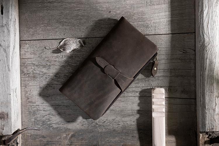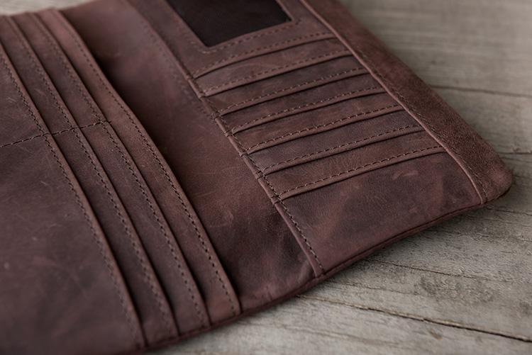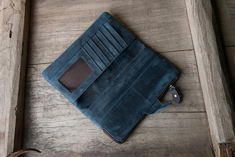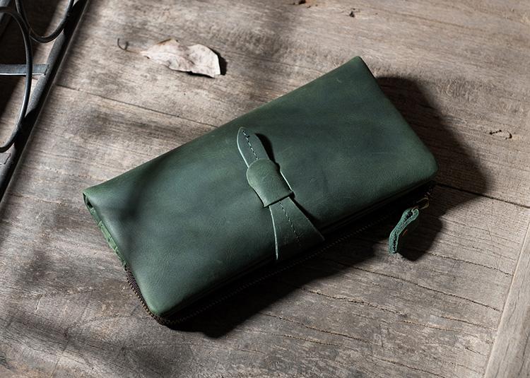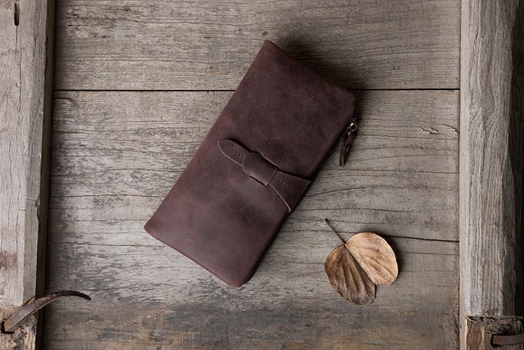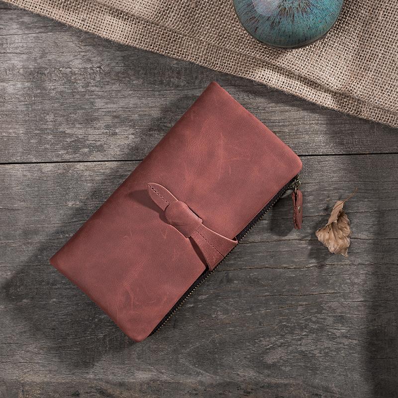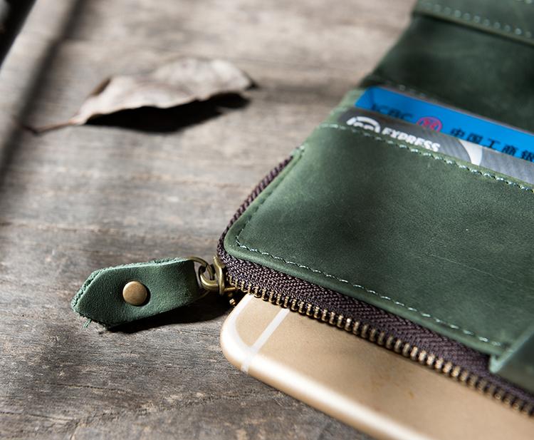 Design: Handmade Leather Mens Clutch Wallet Cool Leather Wallet Long Phone Wallets for Men