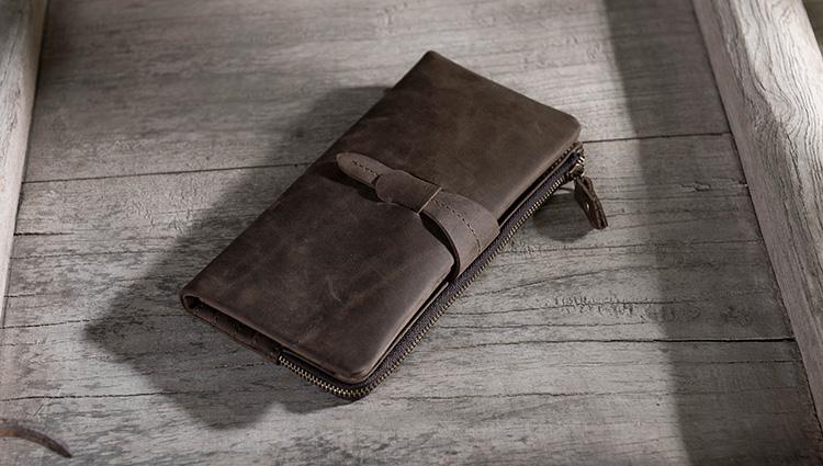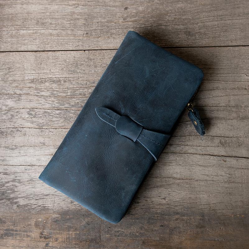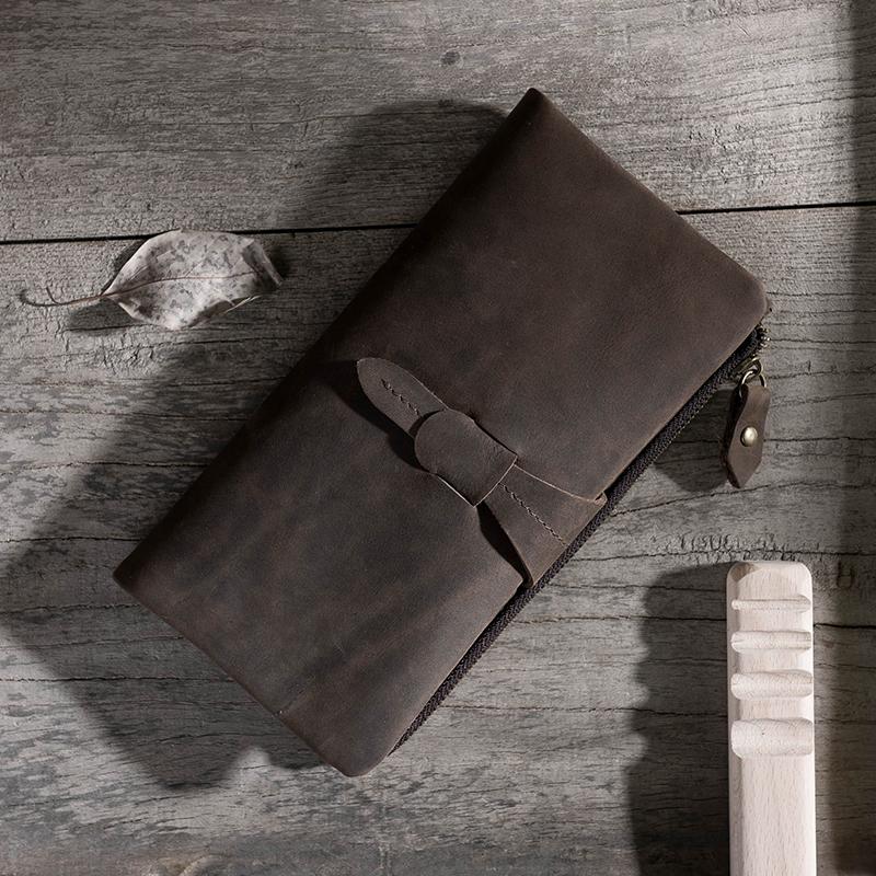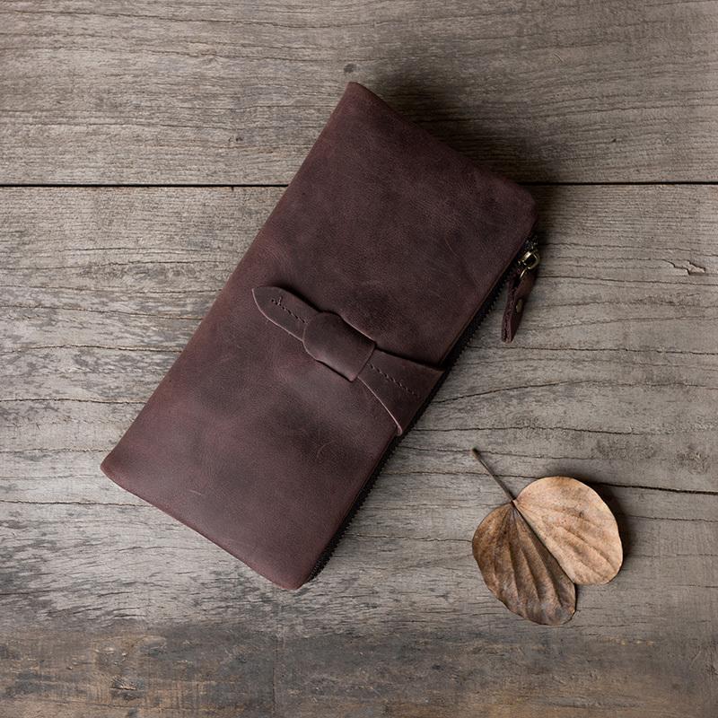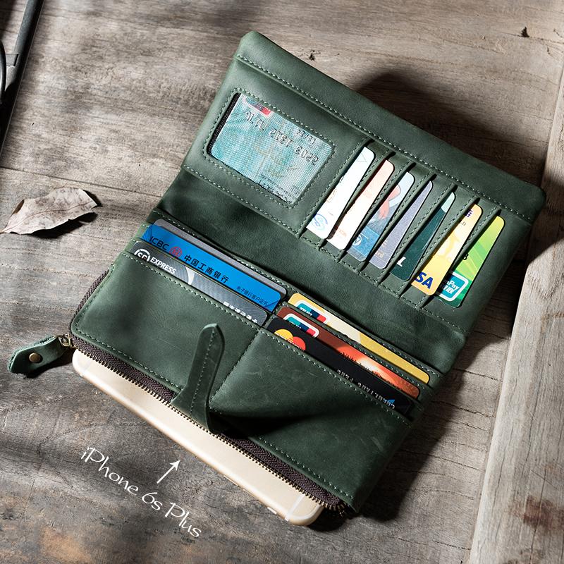 Style: Handmade Leather Mens Clutch Wallet Cool Leather Wallet Long Phone Wallets for Men
