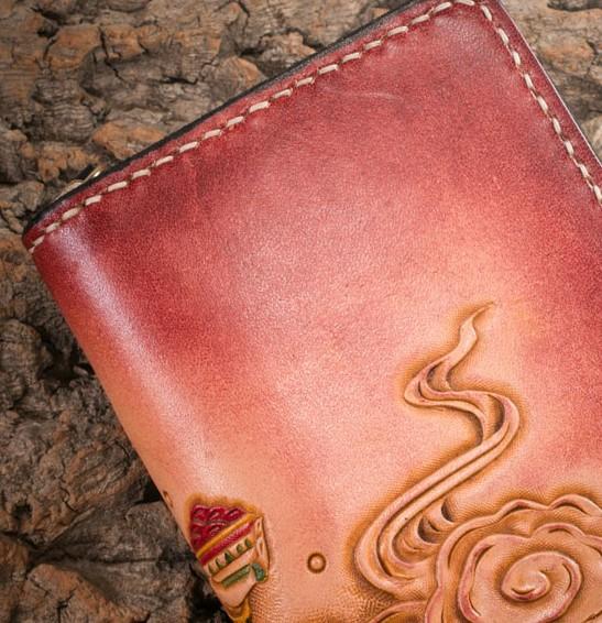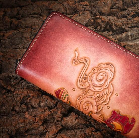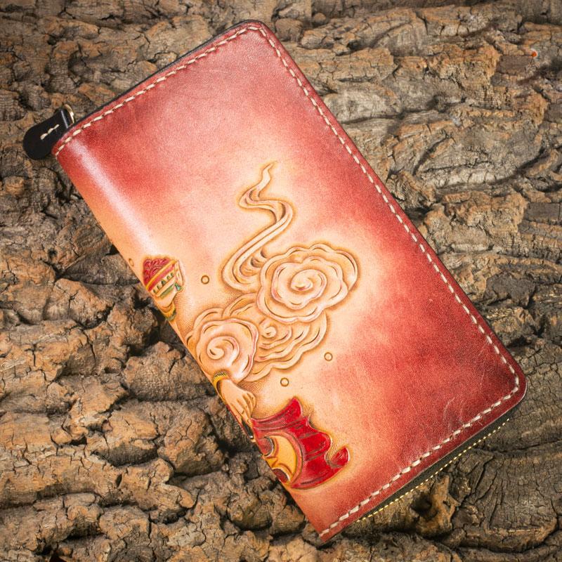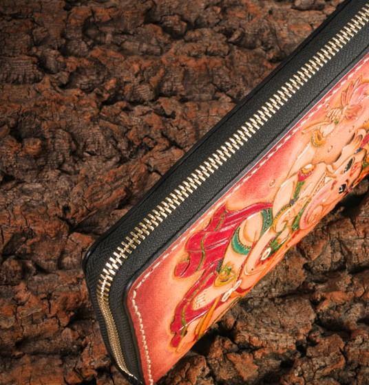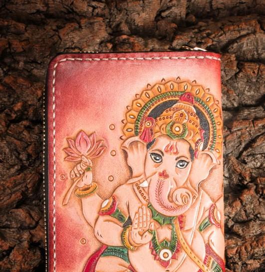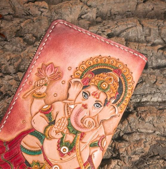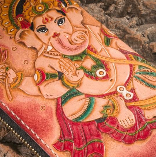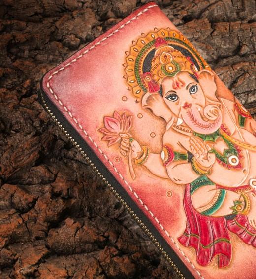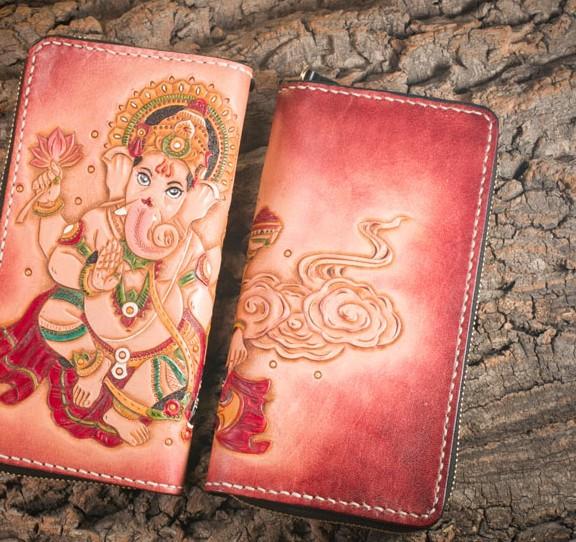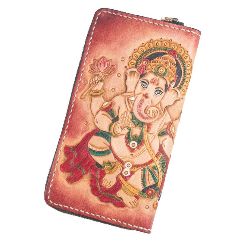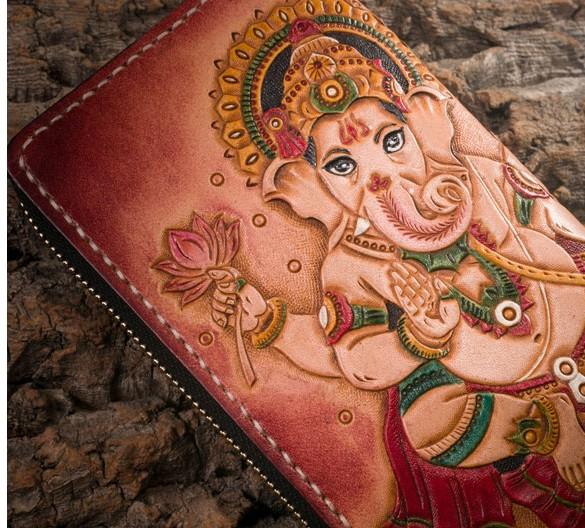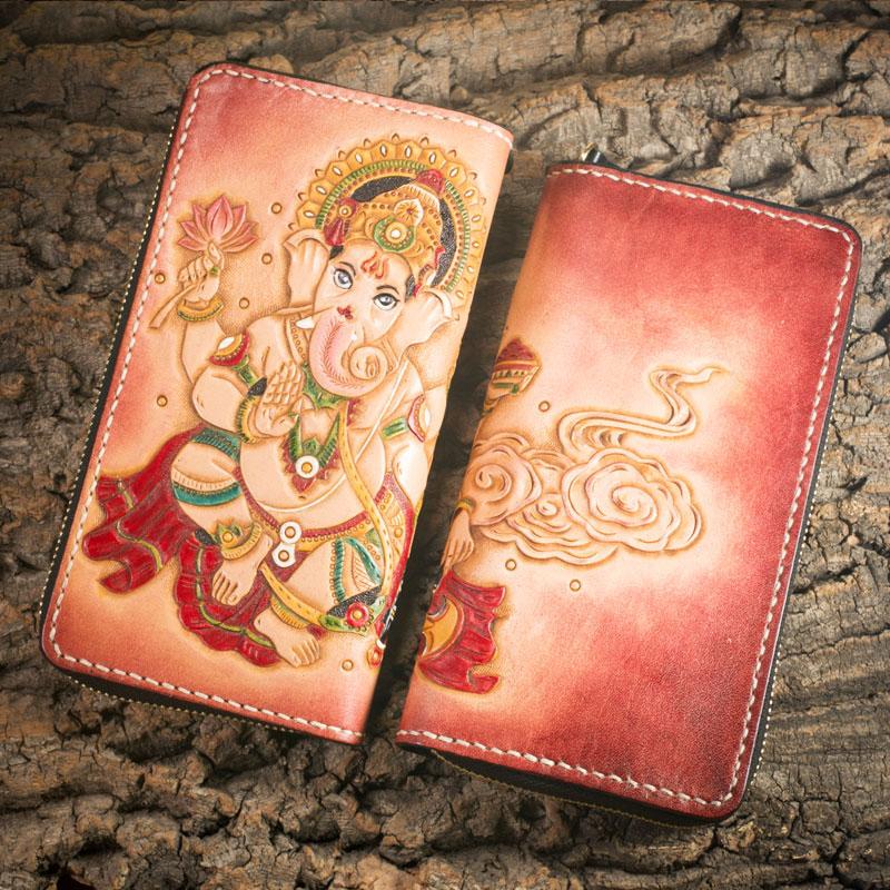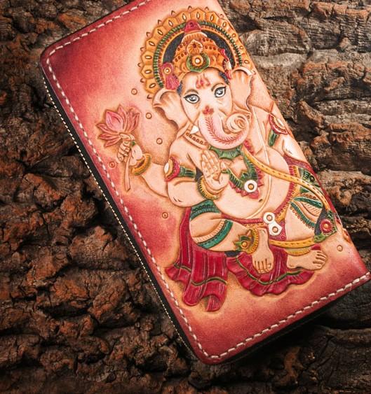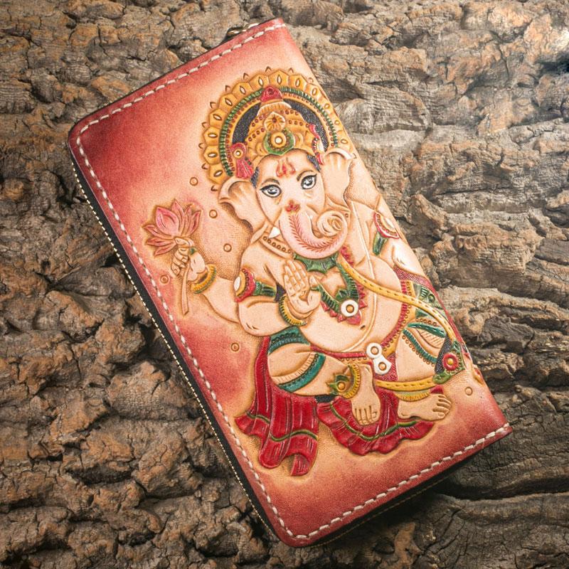 Design: Handmade Leather Mens Clutch Wallet Tooled Cool Ganesha Wallet Long Zipper Wallets for Men