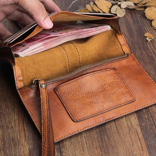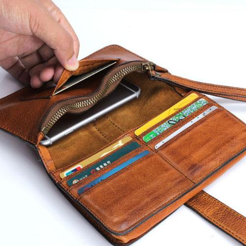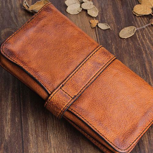 Design: Handmade Leather Mens Cool Long Leather Wallet Bifold Clutch Wallet for Men