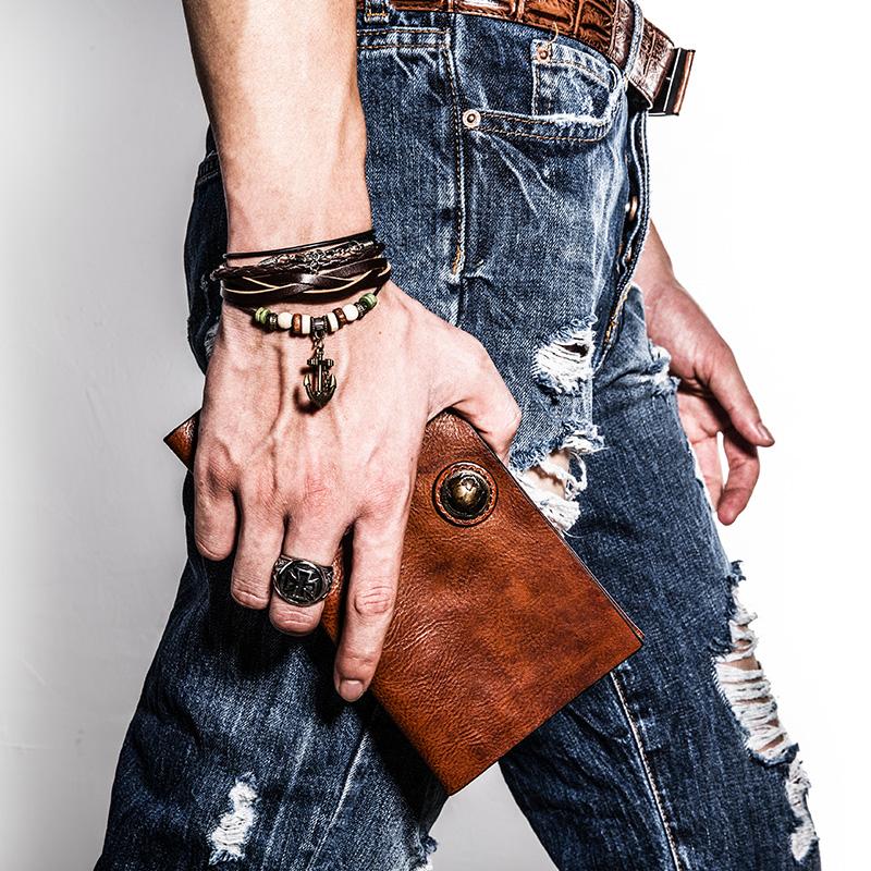 Style:Handmade Leather Mens Cool Long Leather Wallet Bifold Clutch Wallet for Men