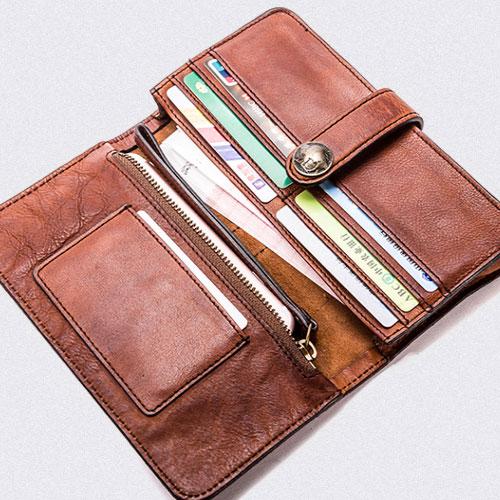 Slots: 1 full size bill slot, 7 card holders, 1 phone slot, 1 zipper slot