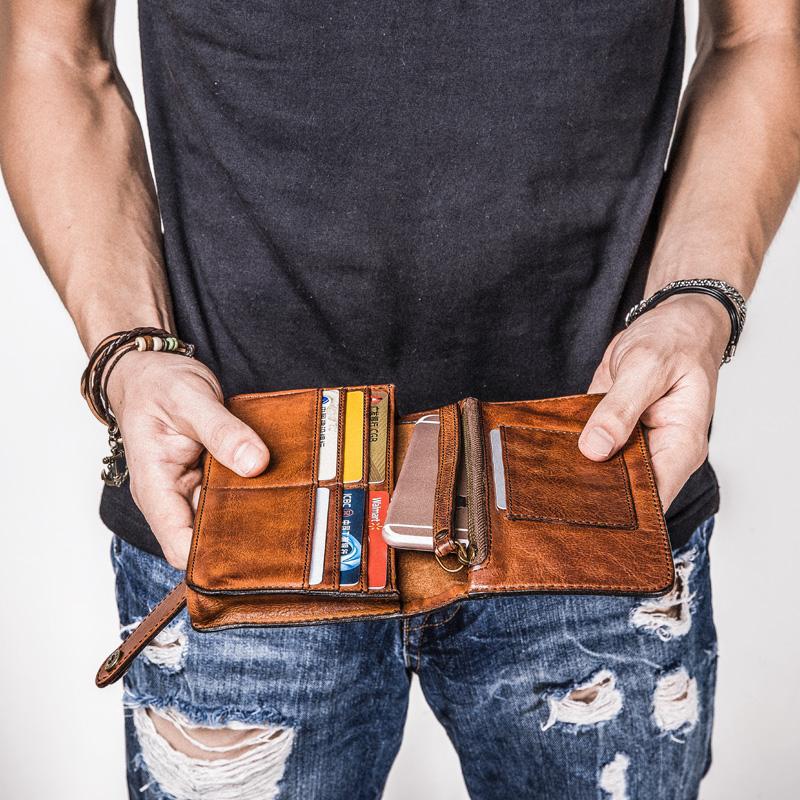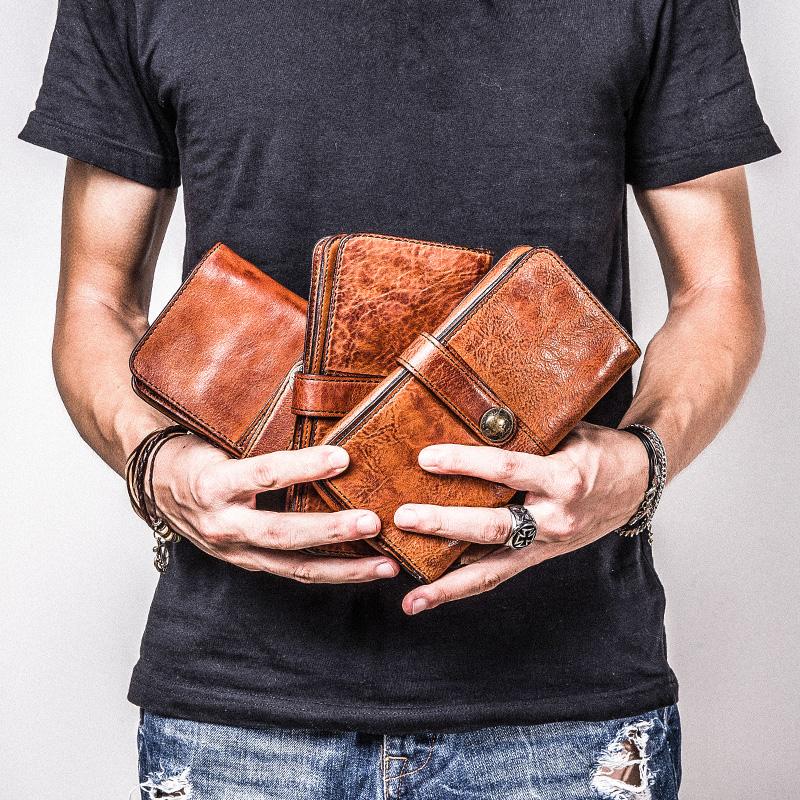 Style:Handmade Leather Mens Cool Long Leather Wallet Bifold Clutch Wallet for Men
