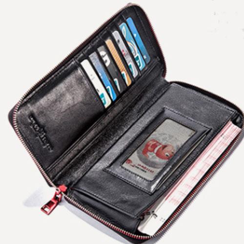 Handmade Leather Mens Cool Long Leather Wallet Bifold Clutch Wallet for Men