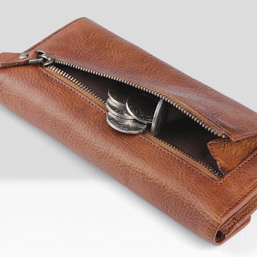 Slots: 2 full size bill slots, 6 card holders, 1 zipper slot, 1 change slot