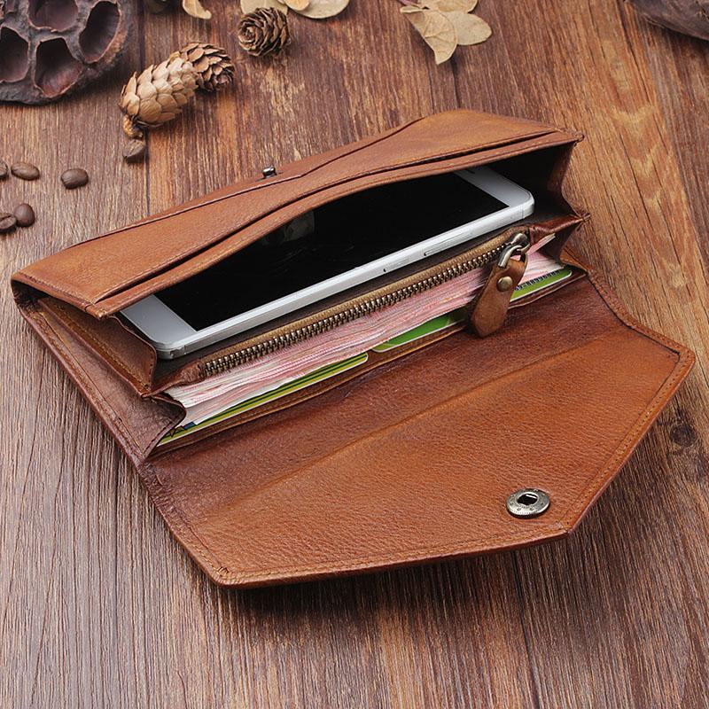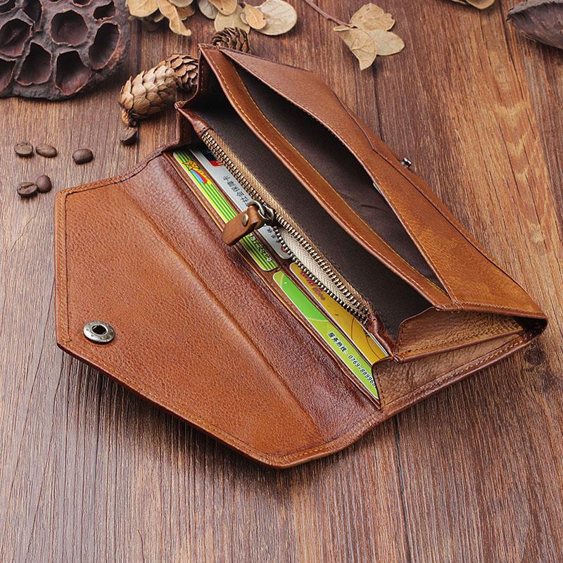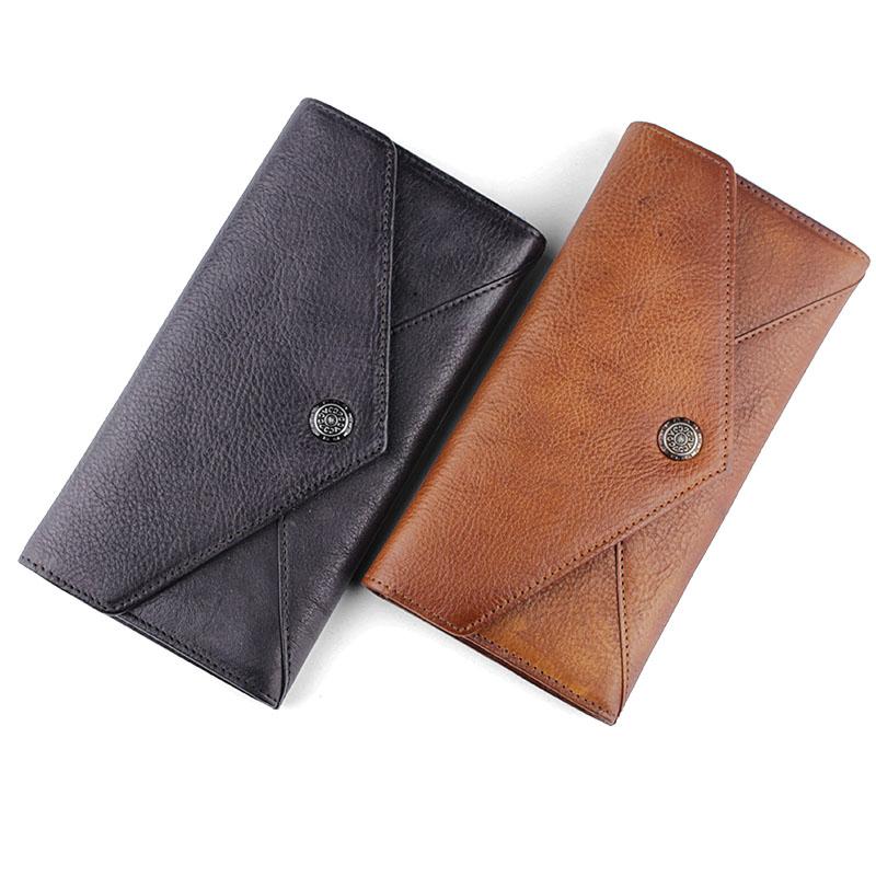 Design: Handmade Leather Mens Cool Long Leather Wallet Bifold Envelope Clutch Wallet for Men