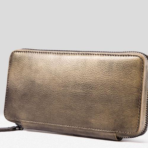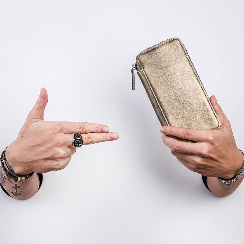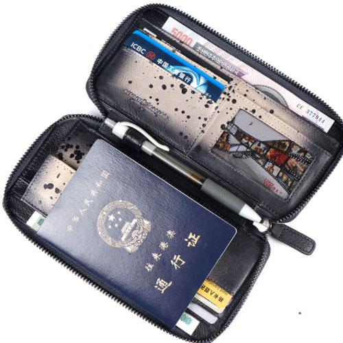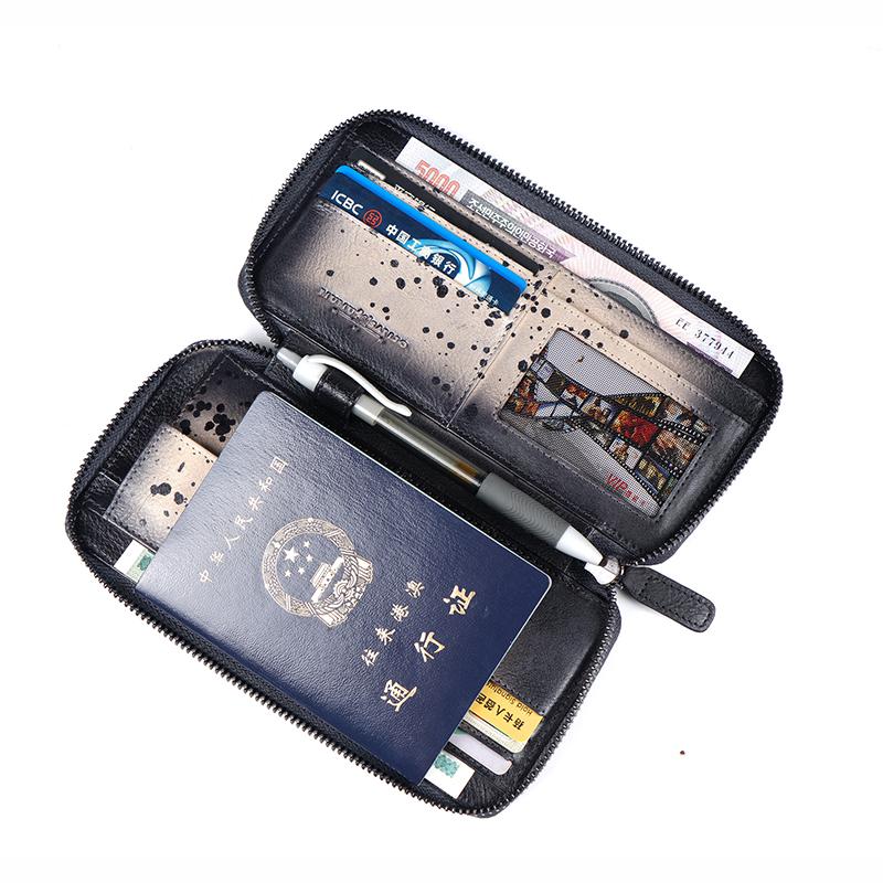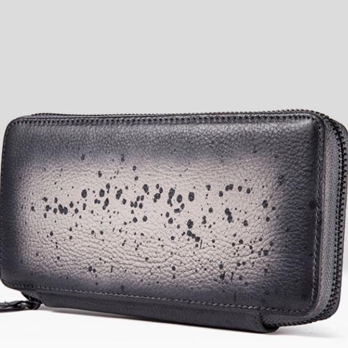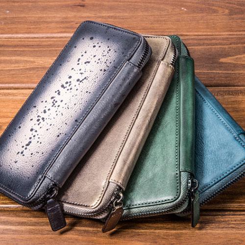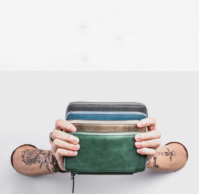 Design: Handmade Leather Mens Cool Long Leather Wallet Bifold Zipper Clutch Wallet for Men