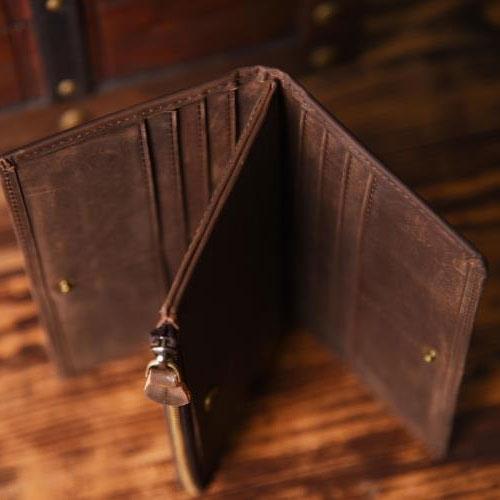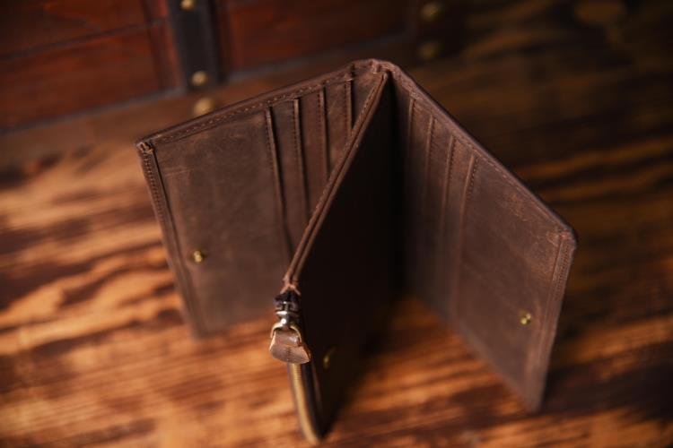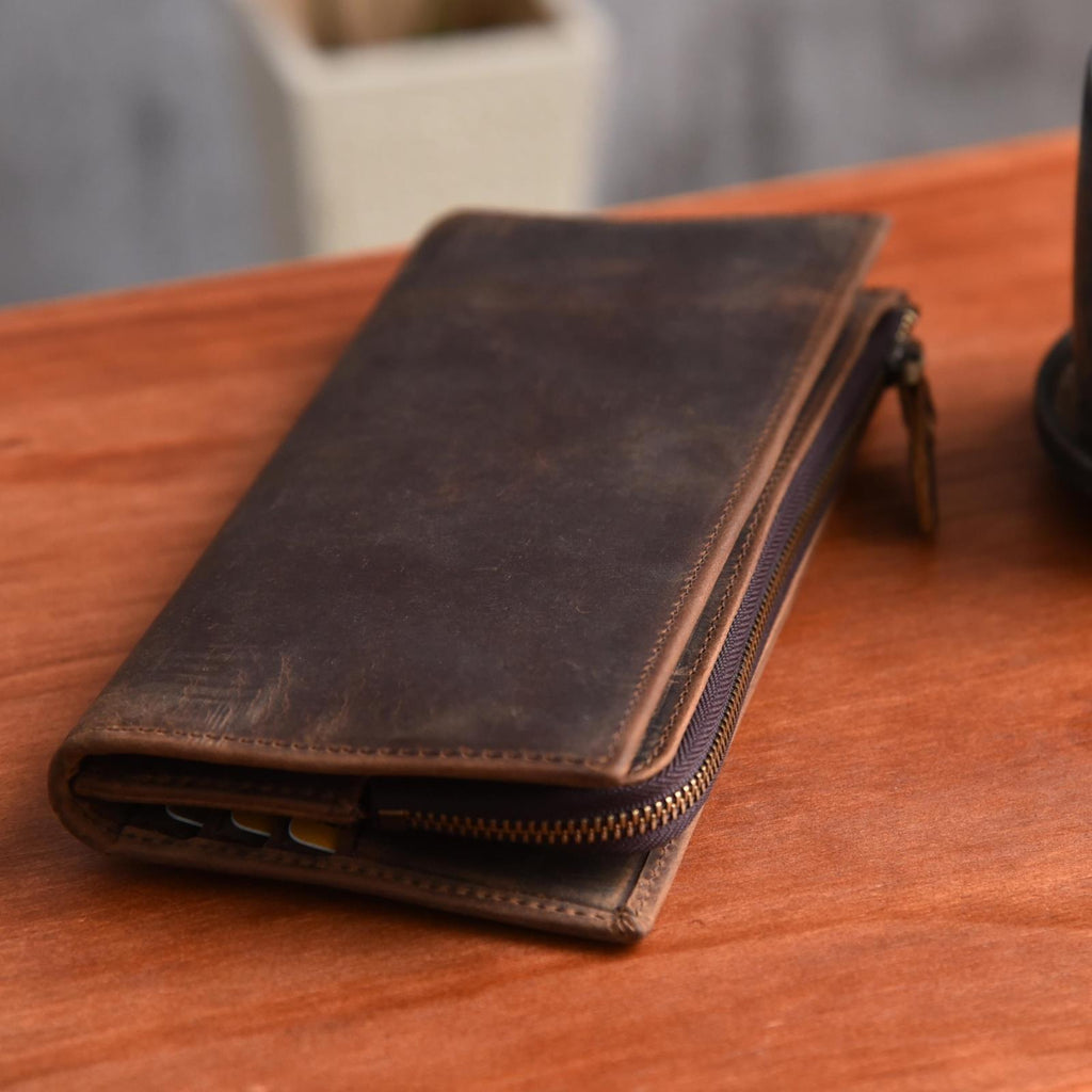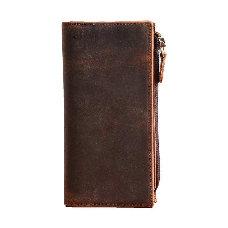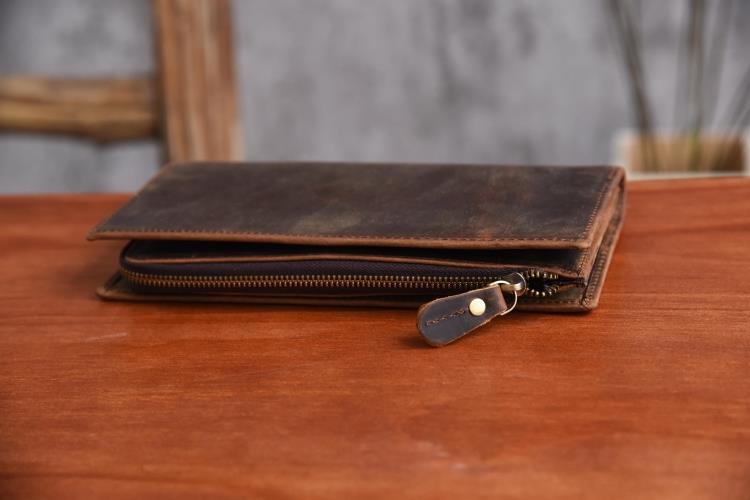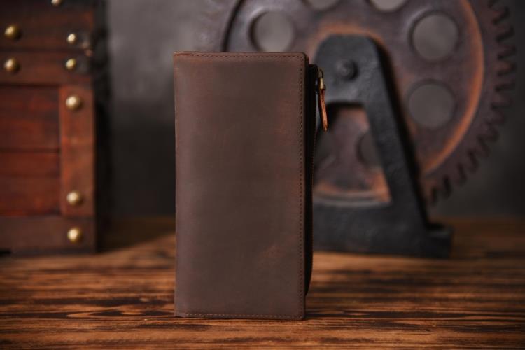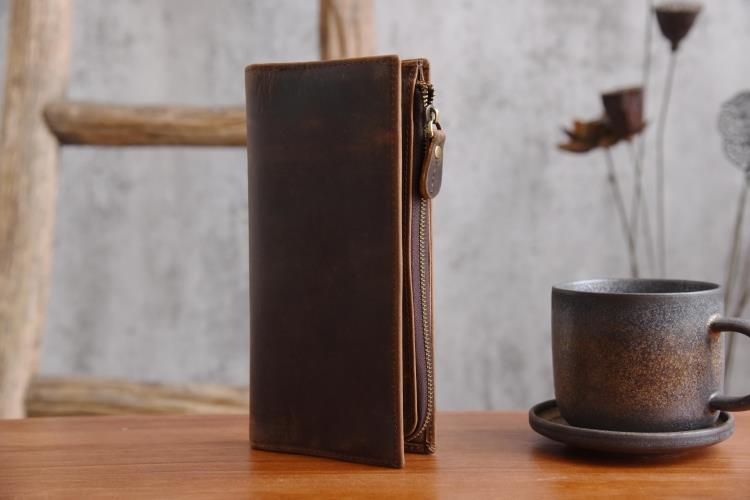 Design: Handmade Leather Mens Cool Long Leather Wallet Zipper Clutch Wallet for Men