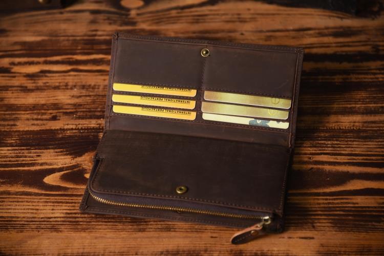 Handmade Leather Mens Cool Long Leather Wallet Cards Clutch Wallet for Men